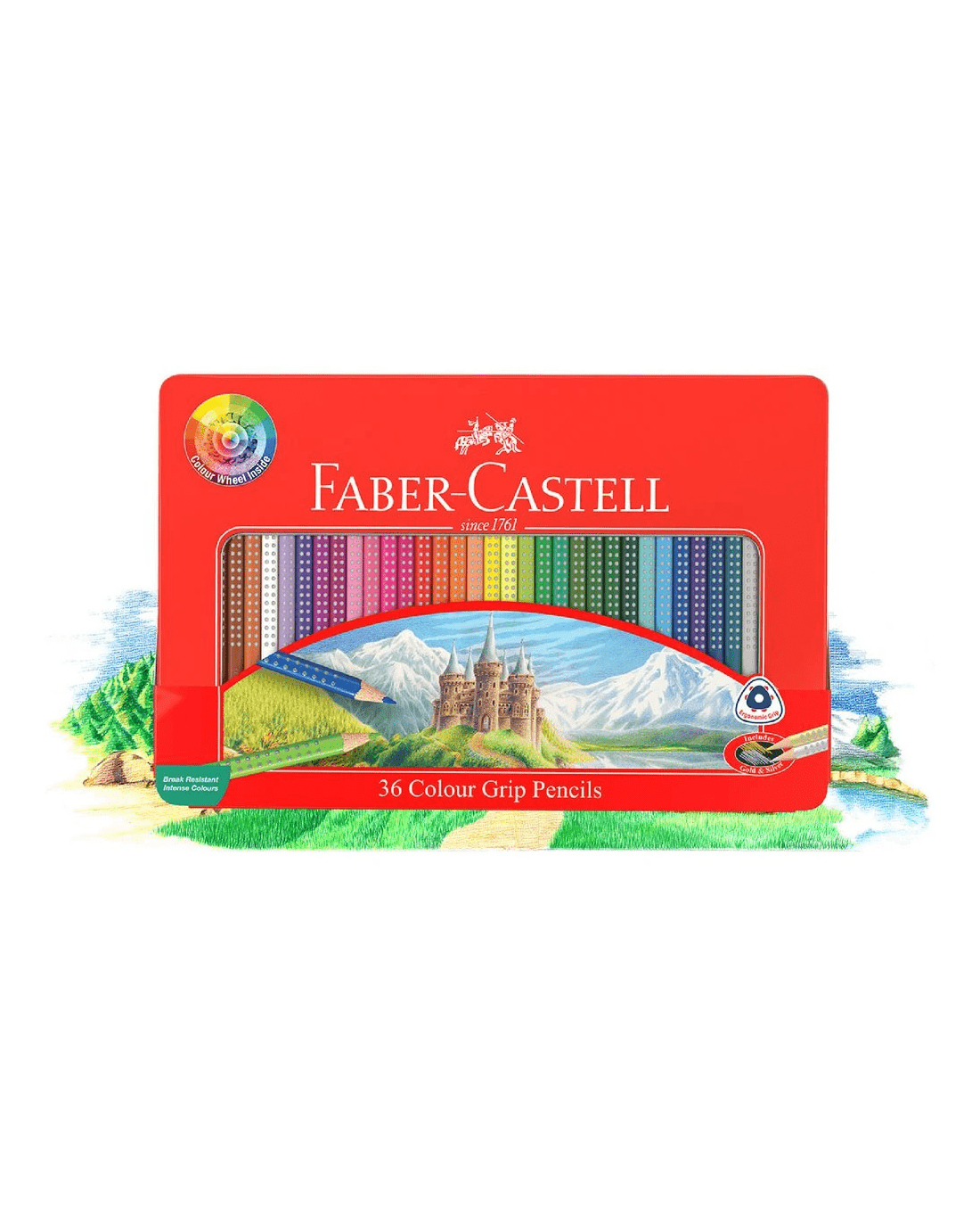 Faber-Castell Colour Grip Triangular Pencils Tin 36 Pack
