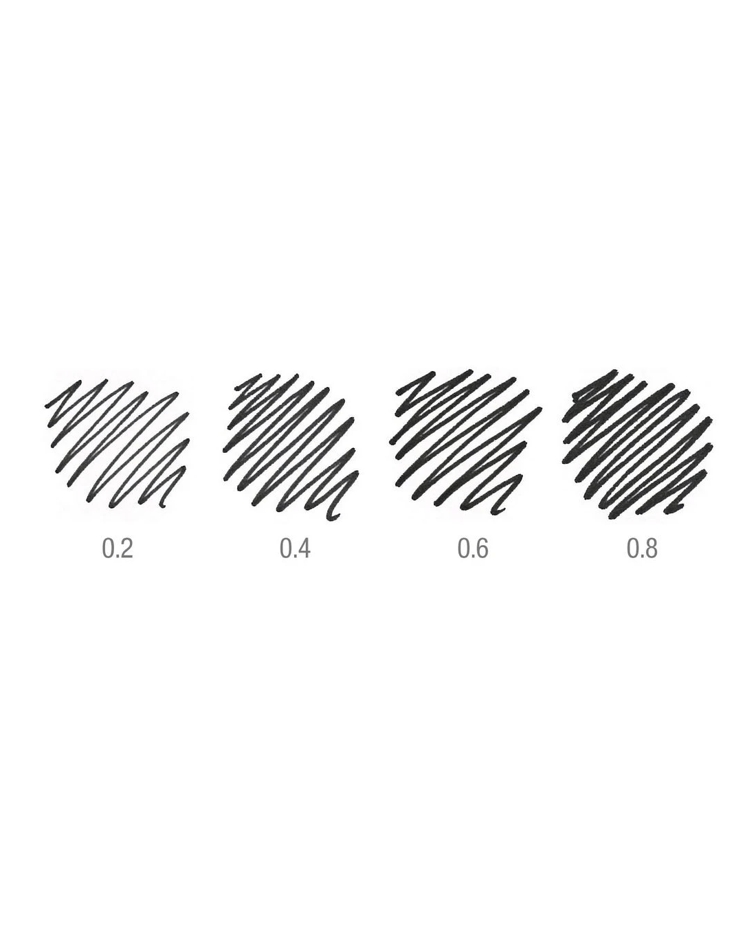 - The pens have nib sizes including 0.2 mm, 0.4 mm, 0.6 mm and 0.8 mm.