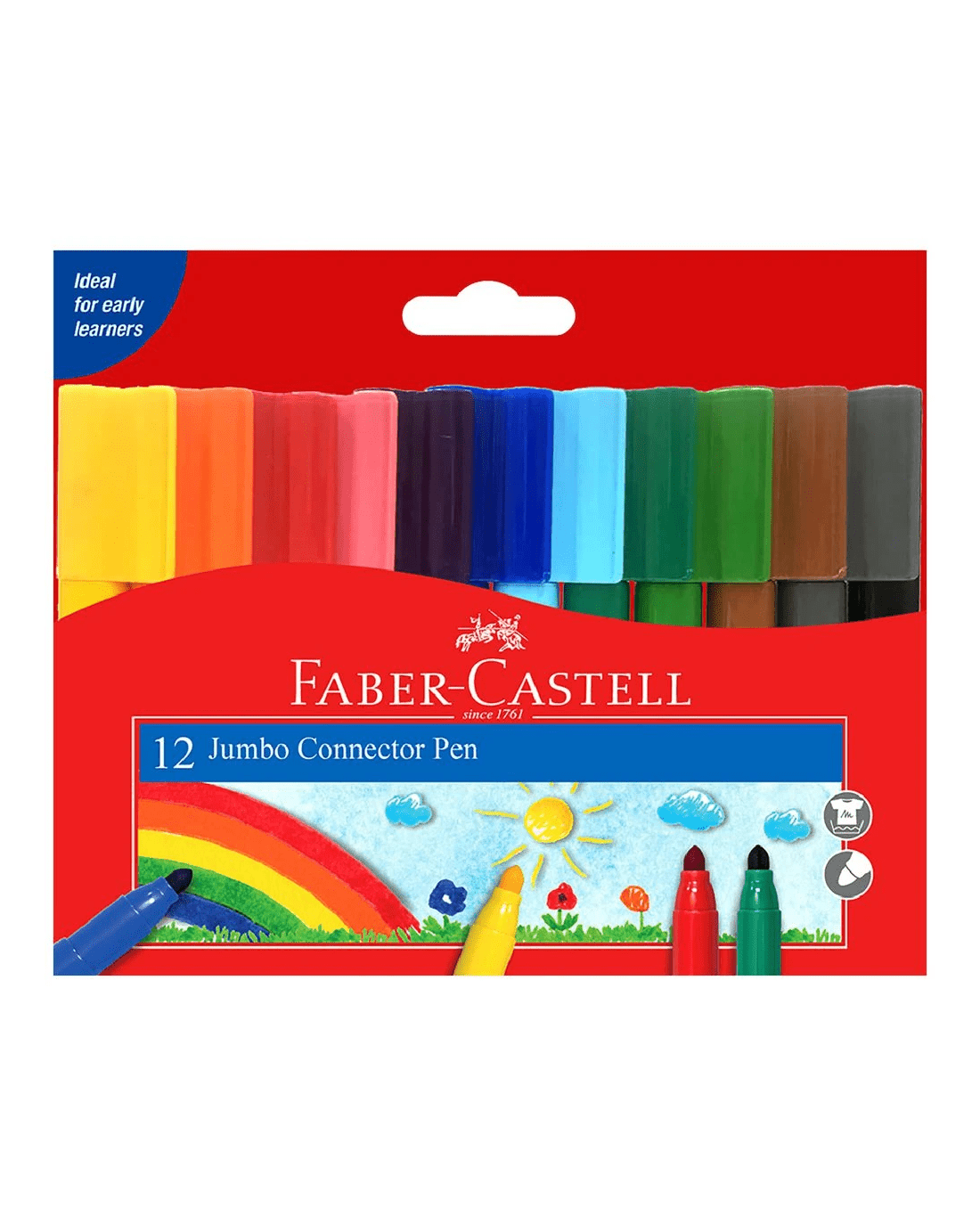 These Faber-Castell Jumbo Connector Pens are a great option when you want to draw and colour in big, bold lines. These markers have a broad tip that writes smoothly and will not bleed through most papers. These connector pens are non-toxic and will wash from most fabrics.