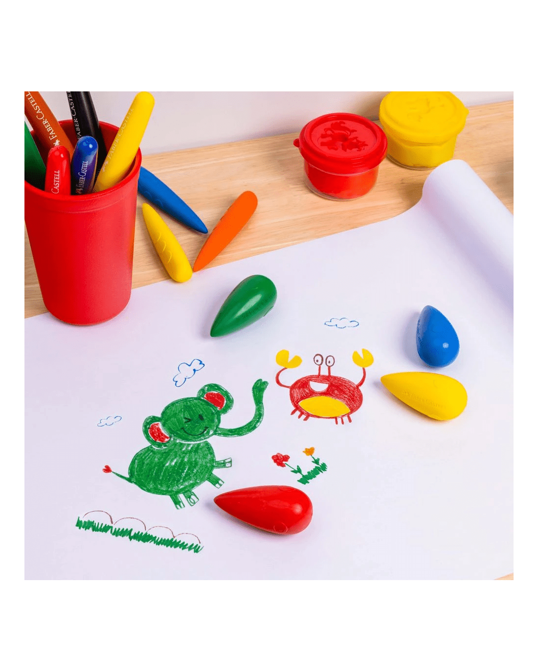 These Faber-Castell Little Creatives Easy Grasp Bulb Crayons are ideal for encouraging the youngest artists to begin their colouring journeys. Designed with an ergonomic bulb shape, these large, round, and easy-to-grasp crayons prompt little ones to develop a healthy grip technique and build whole hand strength.