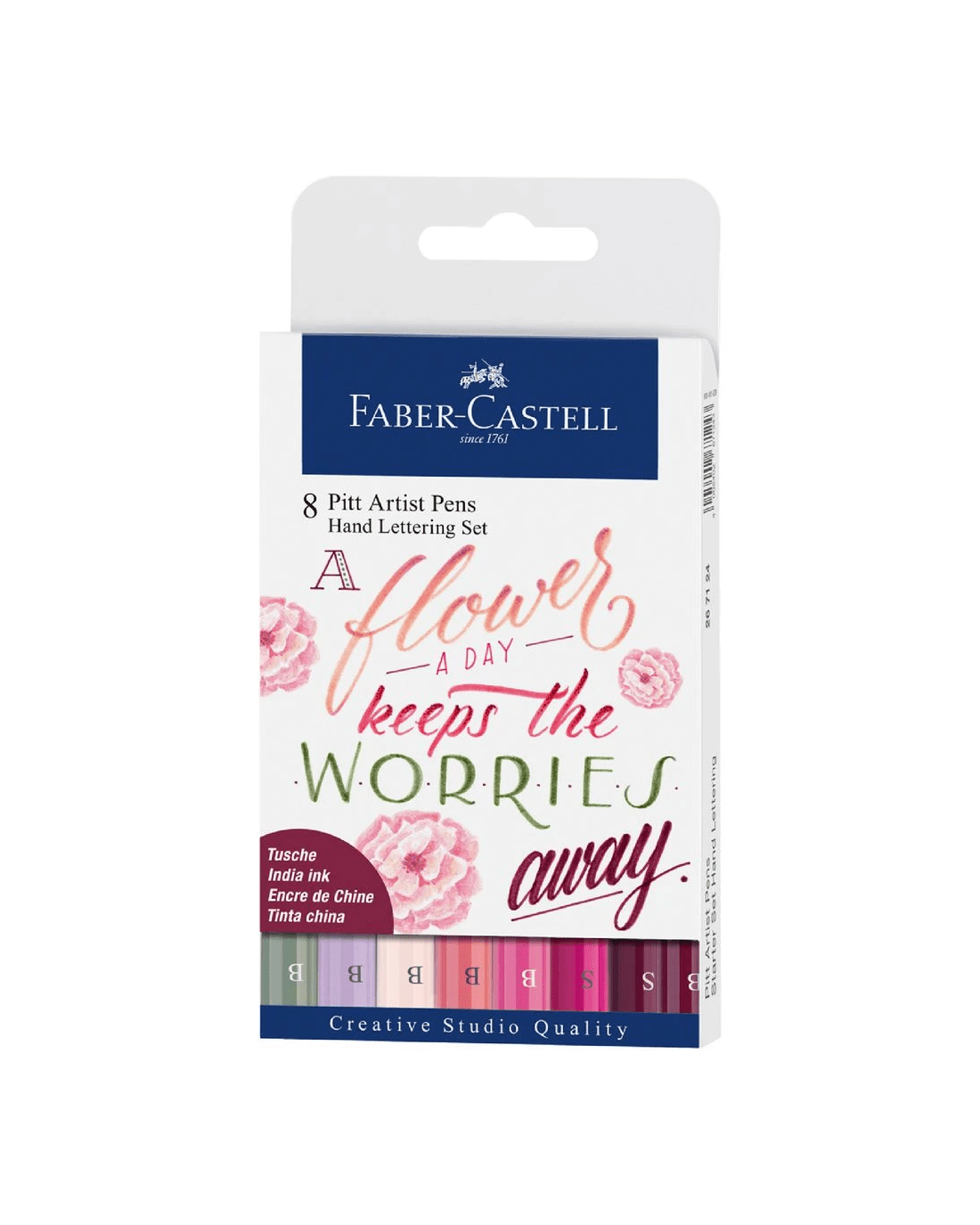 These Faber-Castell Pitt Hand Lettering Artist Pens are ideal for letter art. This pack contains 8 different floral tones with highly pigmented India ink. With their fine 0.3 mm tips, you can achieve a high level of detail.