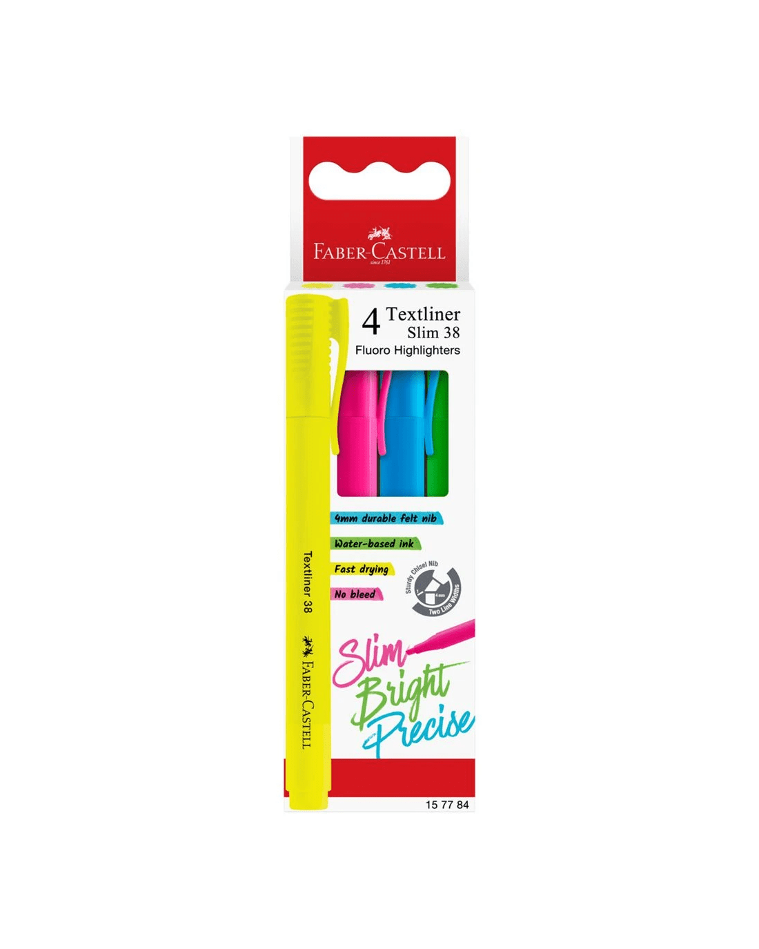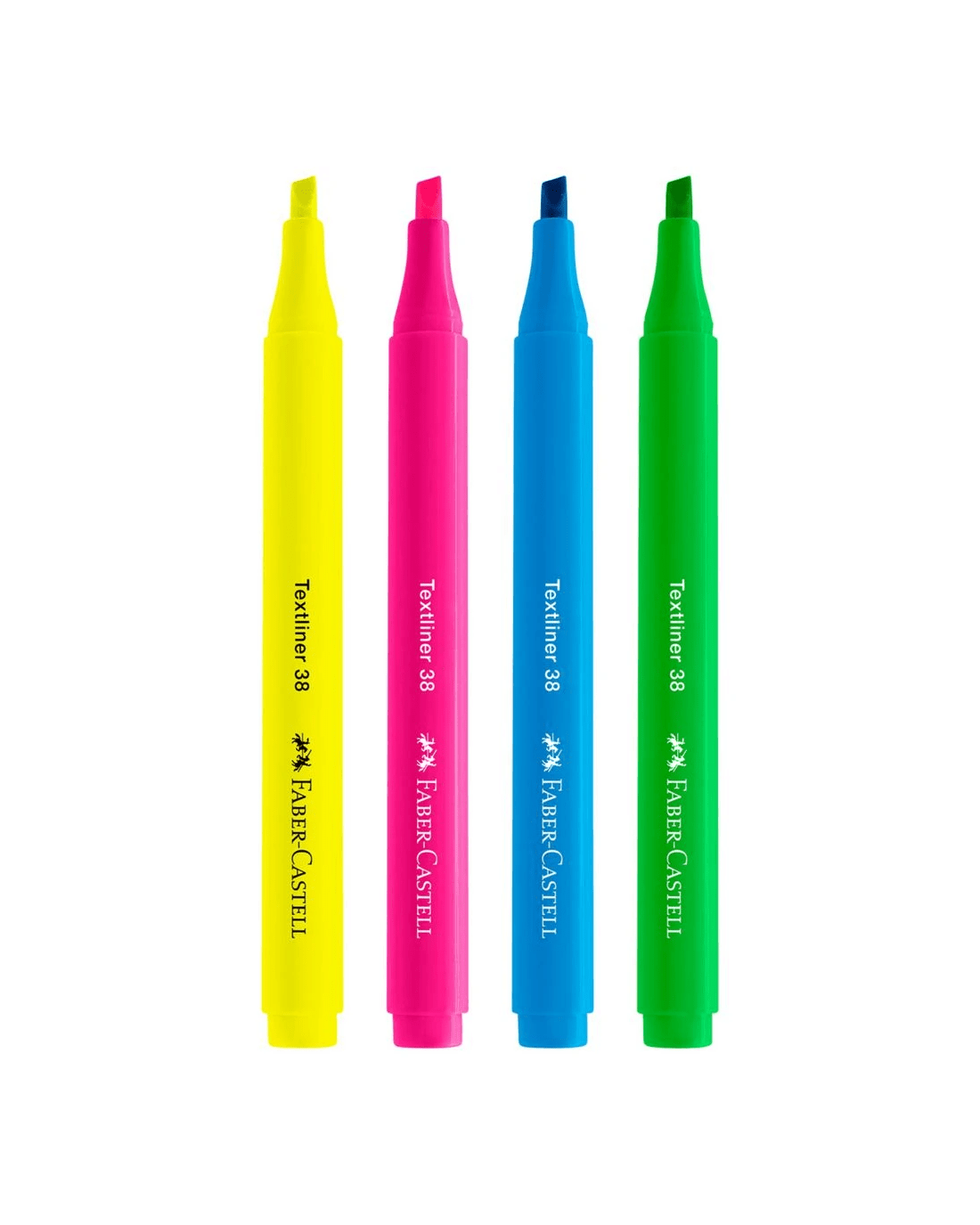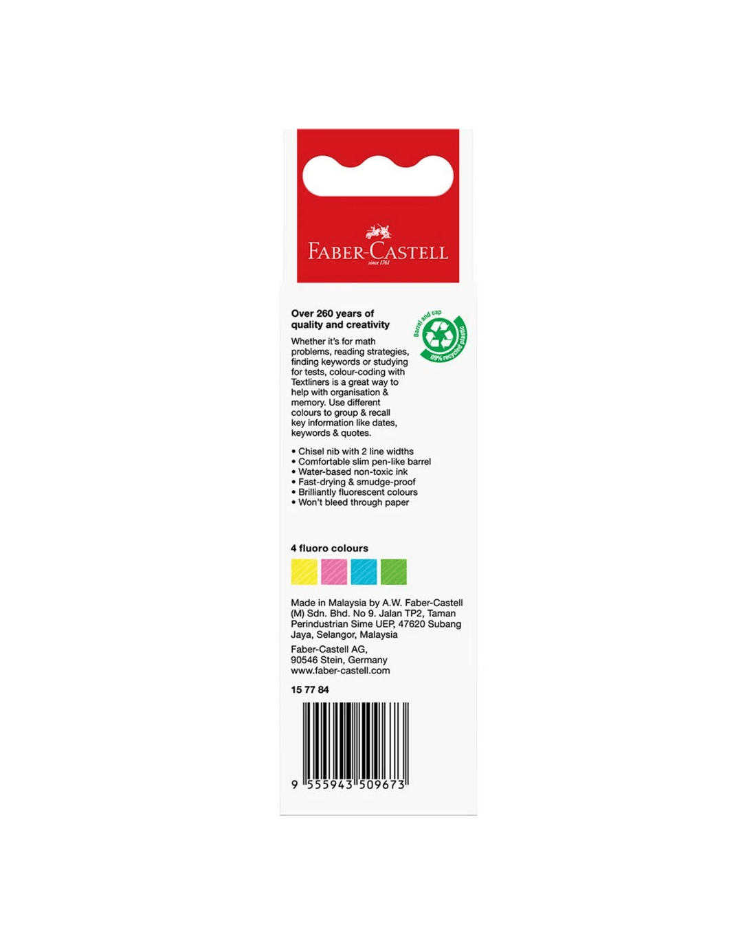 Faber-Castell Textliner 38 Highlighters Fluro Assorted 4 Pack