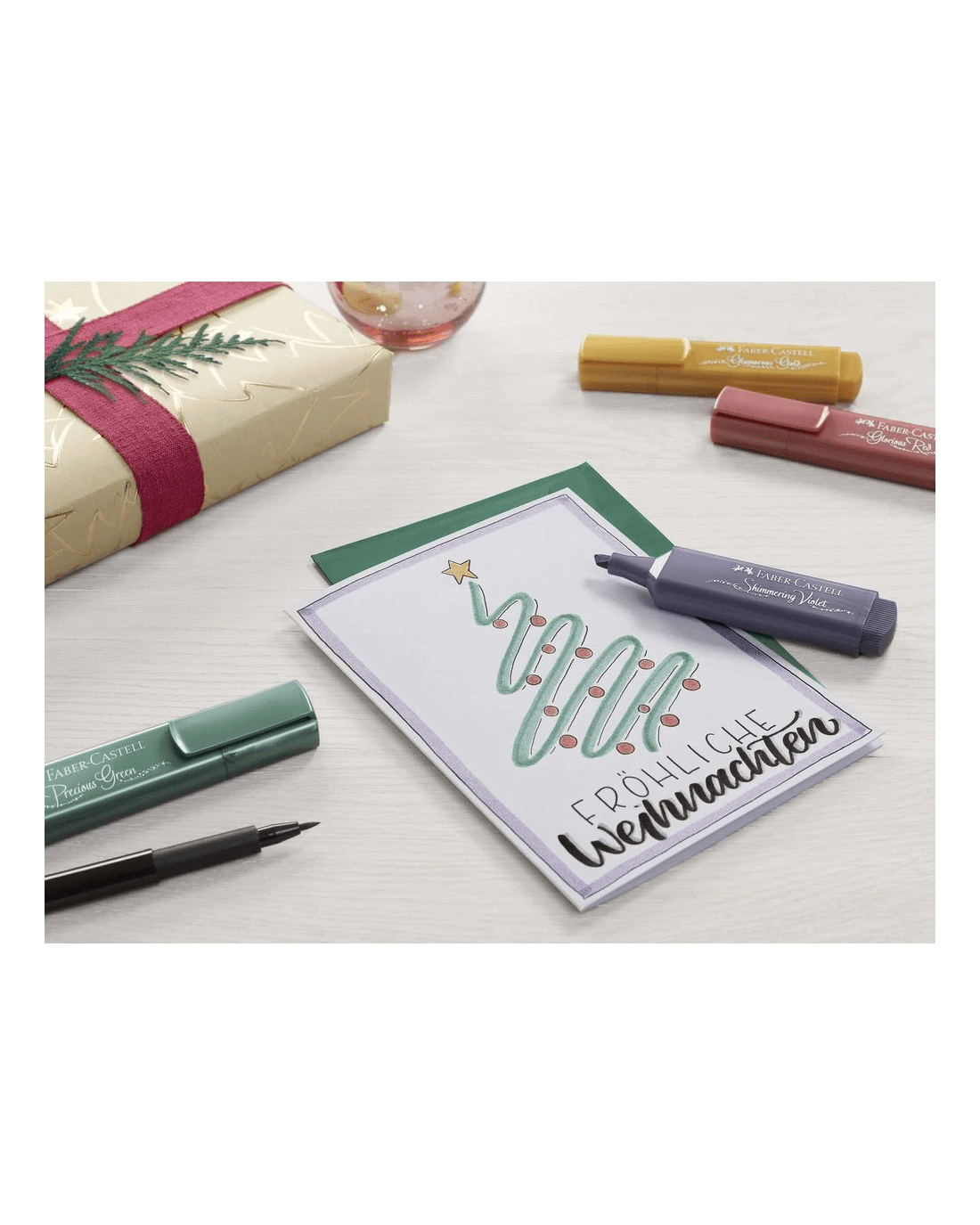 - The ink comes in a metallic precious green shade.