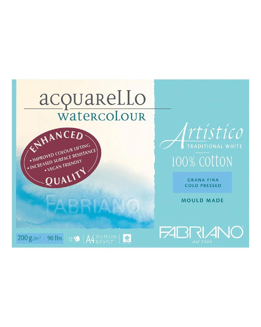 Fabriano A4 Watercolour Pad 100% Cotton 12 Sheets