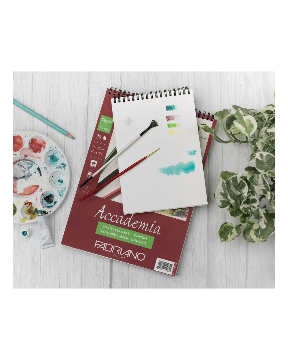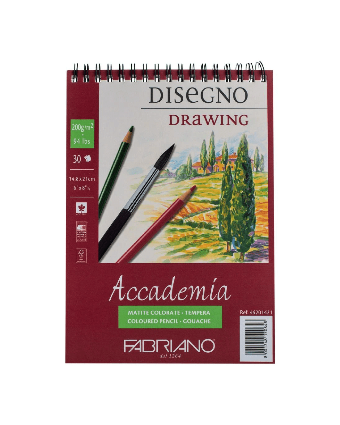 This Fabriano Accademia A5 Drawing Pad contains high quality, lignin free and acid-free cellulose, guaranteeing long conservation over time. The 200 gsm paper is ideal for drawing with coloured pencil and gouache. It's suitable for professional and amateur artists.