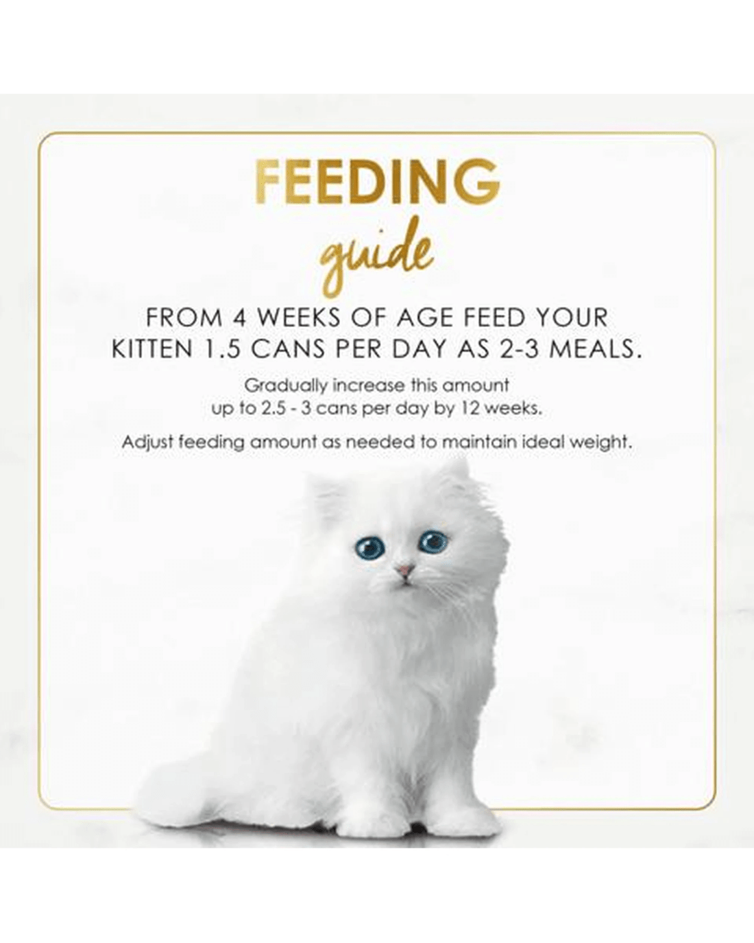 - From 4 weeks of age, feed your kitten 1.5 cans per day as 2-3 meals