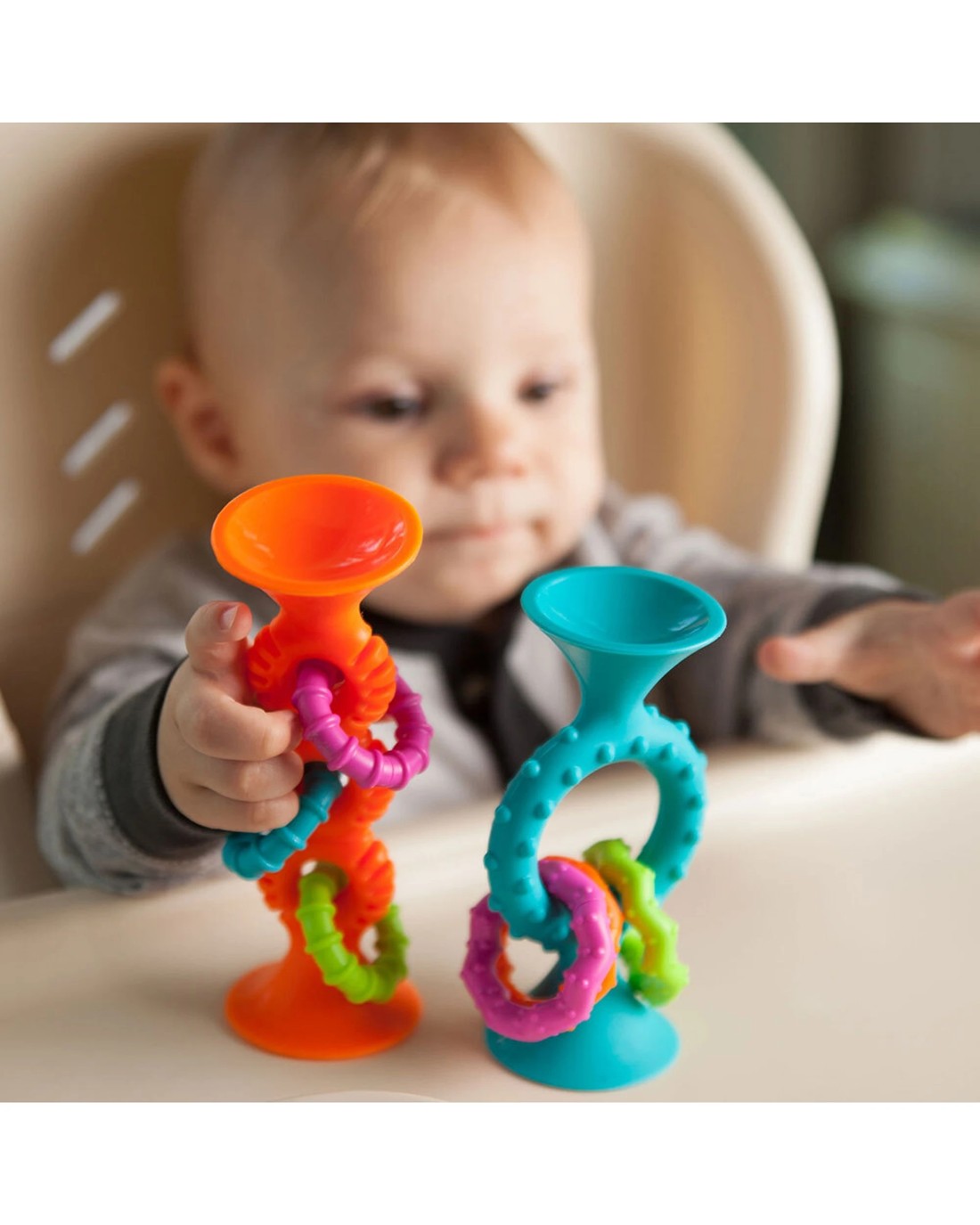 Fat Brain Toy Co PipSquigz Loops Sensory Toy Silicone Suction Cups - Orange