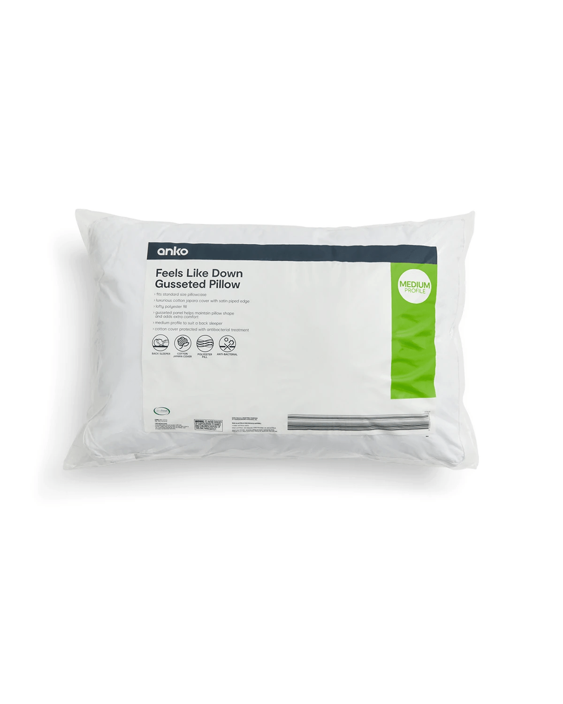 Feels Like Down Gusseted Pillow - Medium Profile, White