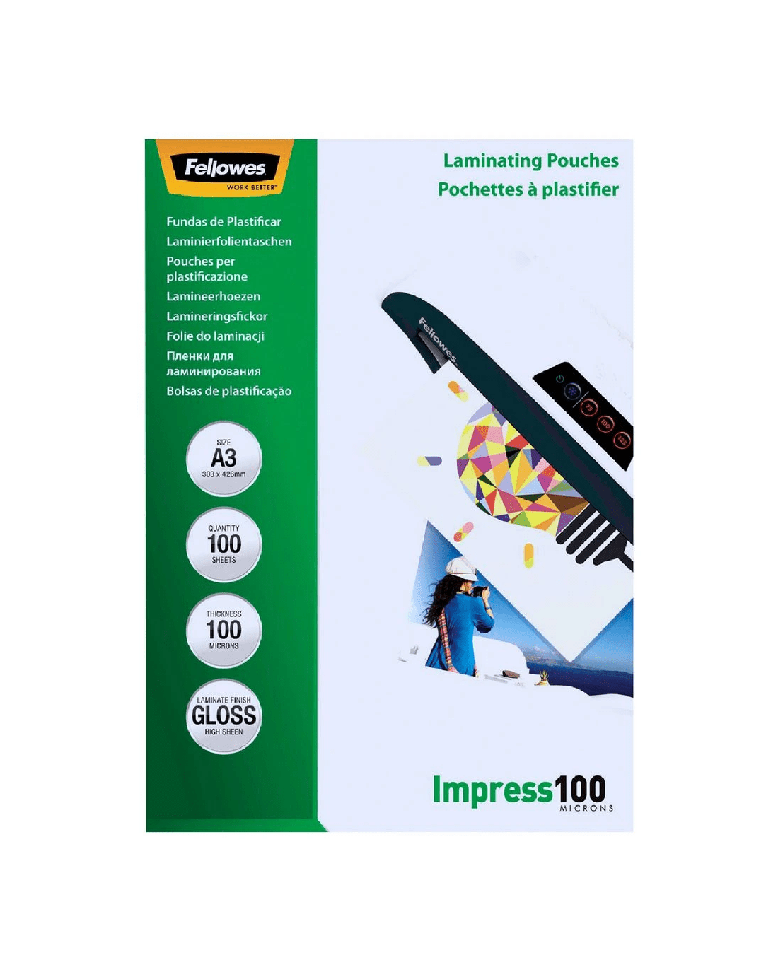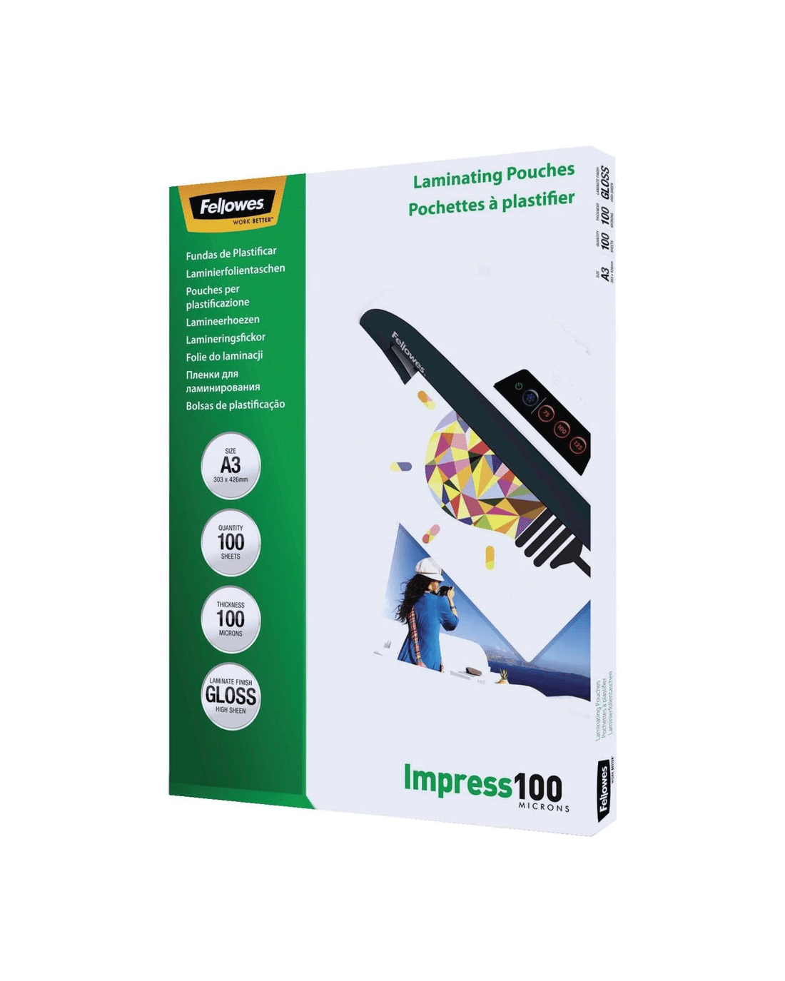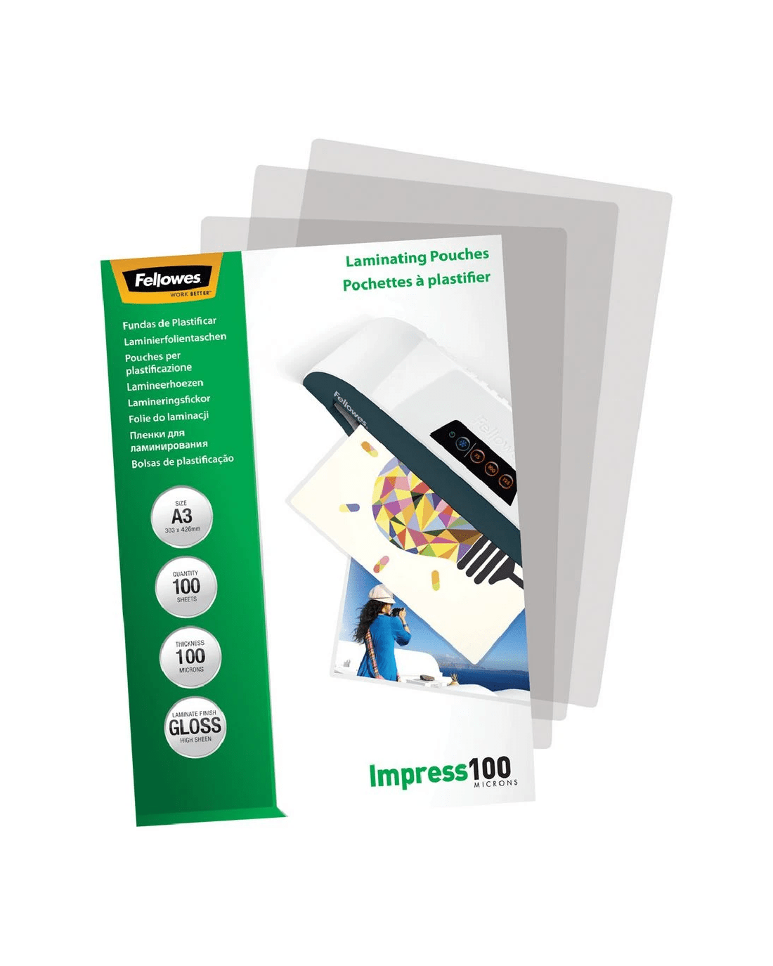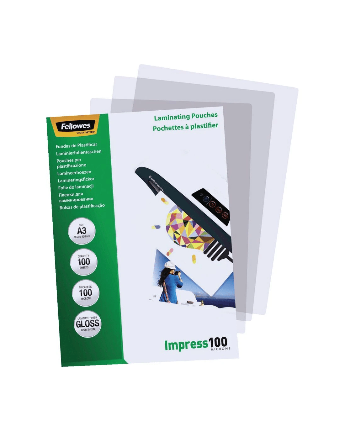 Sold by OfficeworksFellowes A3 100 Micron Laminating Pouch Gloss 100 Pack