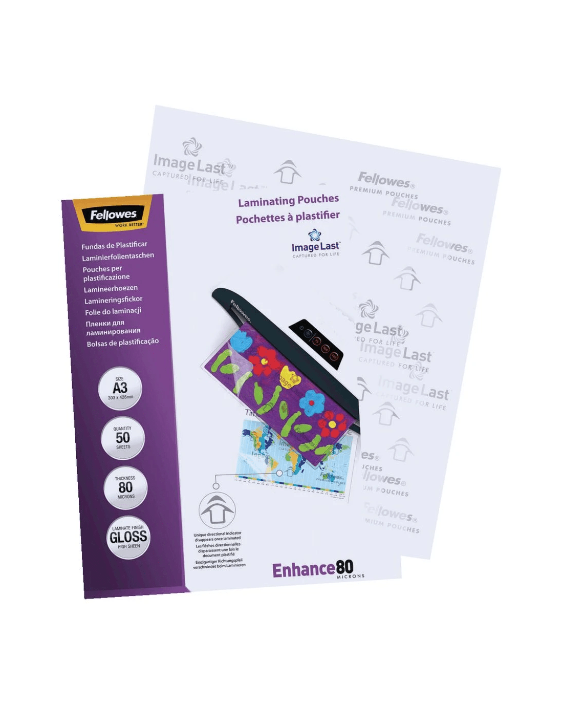 Sold by OfficeworksFellowes A3 80 Micron Laminating Pouch Gloss 50 Pack