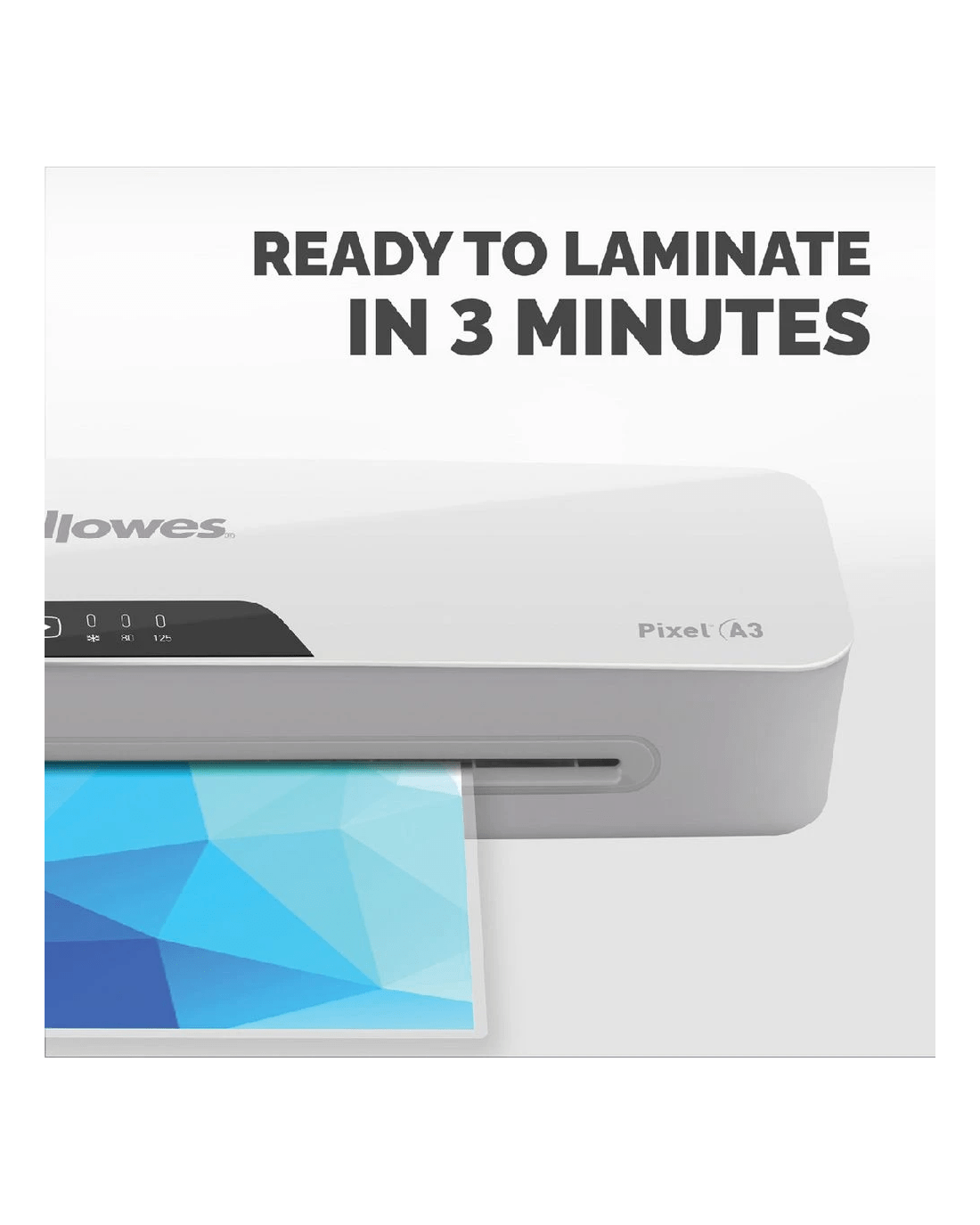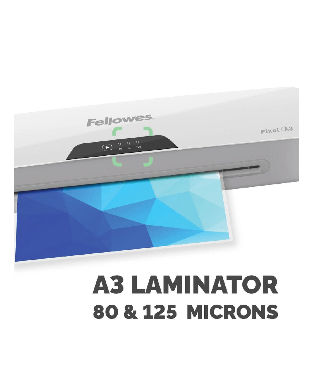 This Fellowes A3 Pixel Laminator is ideal for keeping your documents protected. It comes with a Jam Release mechanism to prevent paper jams if documents are fed incorrectly plus an auto shut off feature to help save power. Get laminating today with the fast 3 minute warm up time and included 10 pouches.