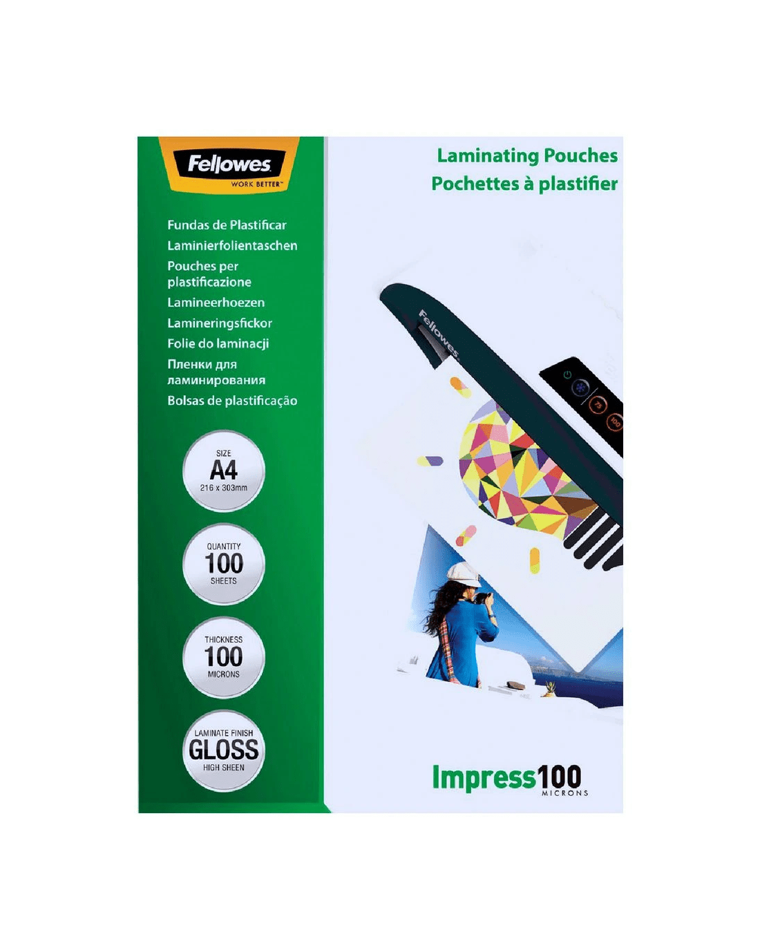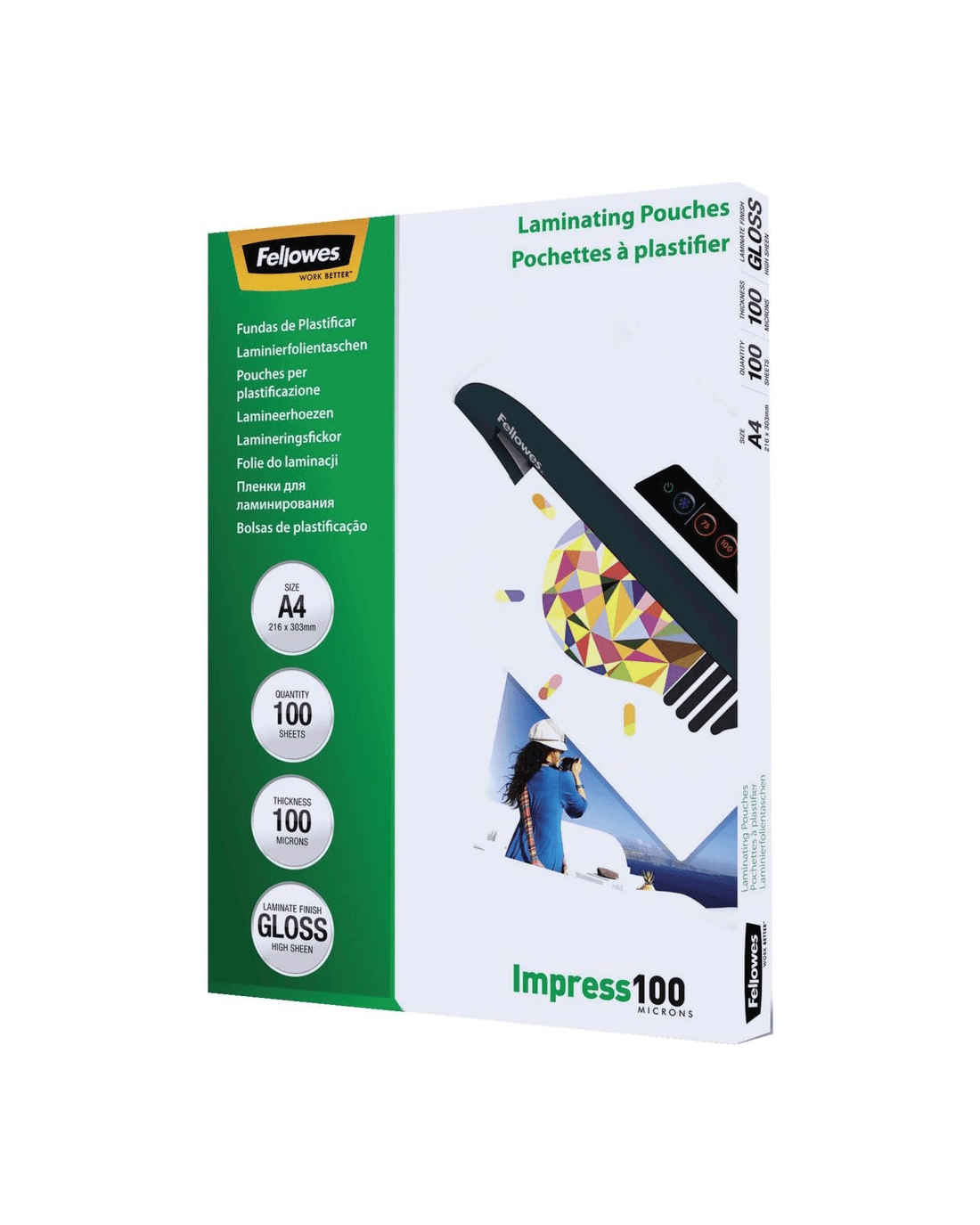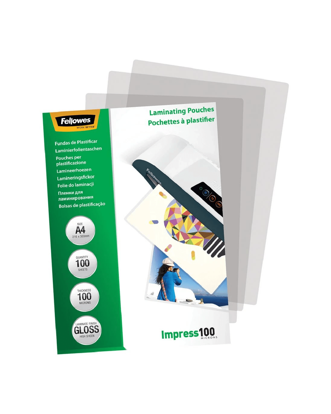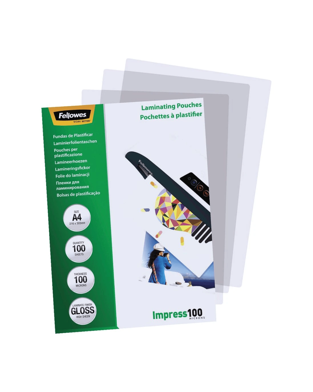 Sold by OfficeworksFellowes A4 100 Micron Laminating Pouch Gloss 100 Pack