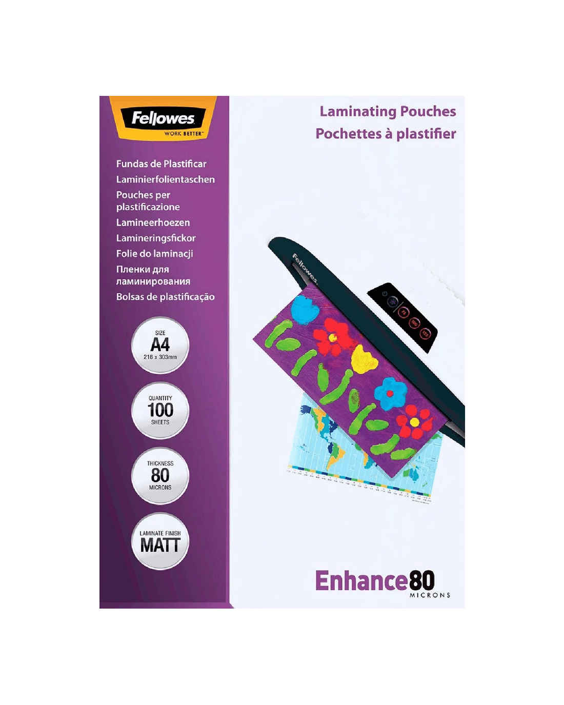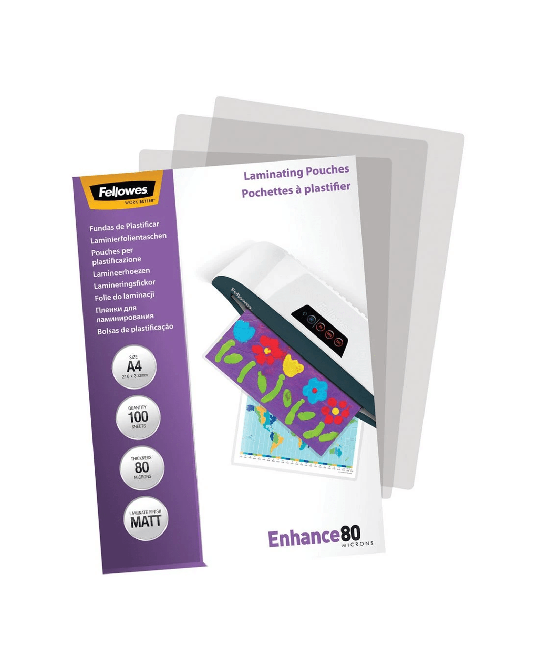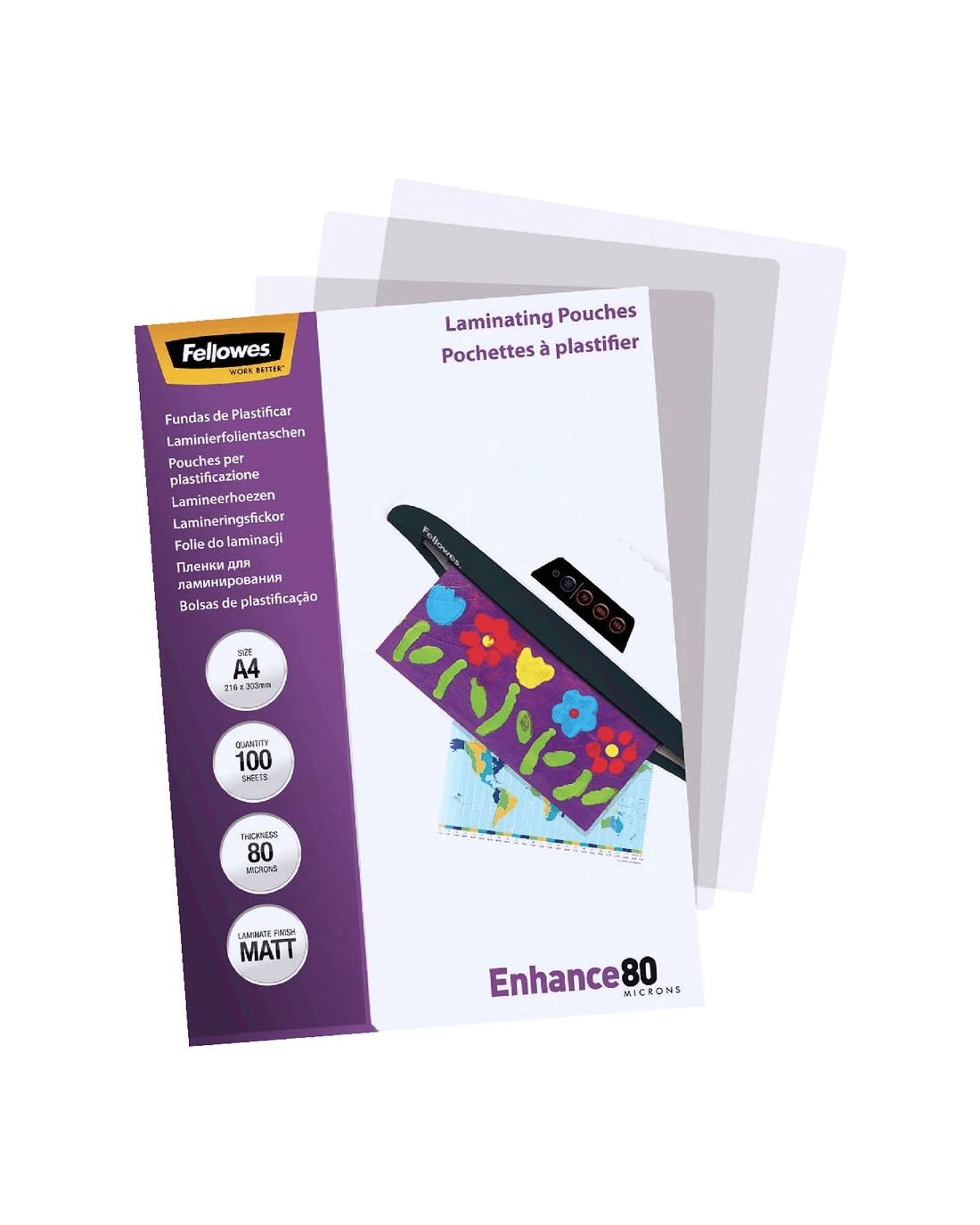 Sold by OfficeworksFellowes A4 80 Micron Laminating Pouch Matte 100 Pack