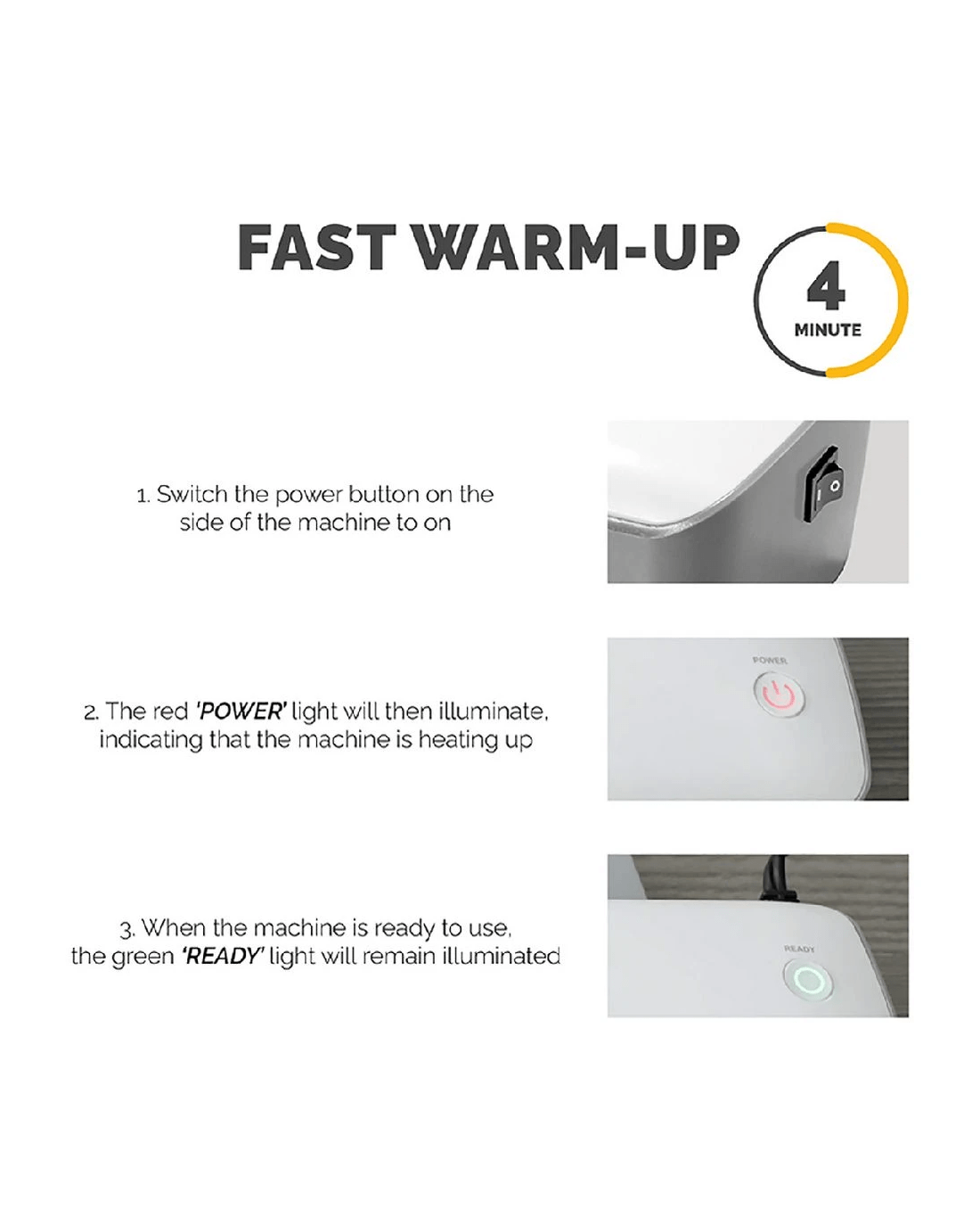 - This laminator is ready when you are with the quick 4 minute warm up time.