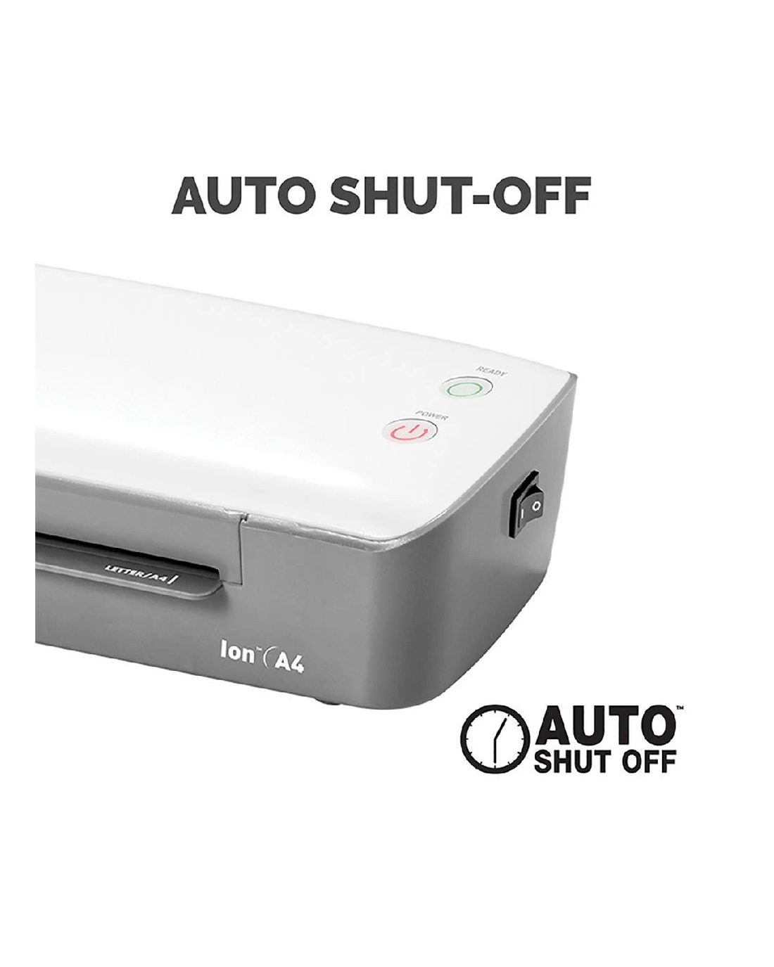 - Power save with this laminator's auto shutdown function within 30 minutes of inactivity.