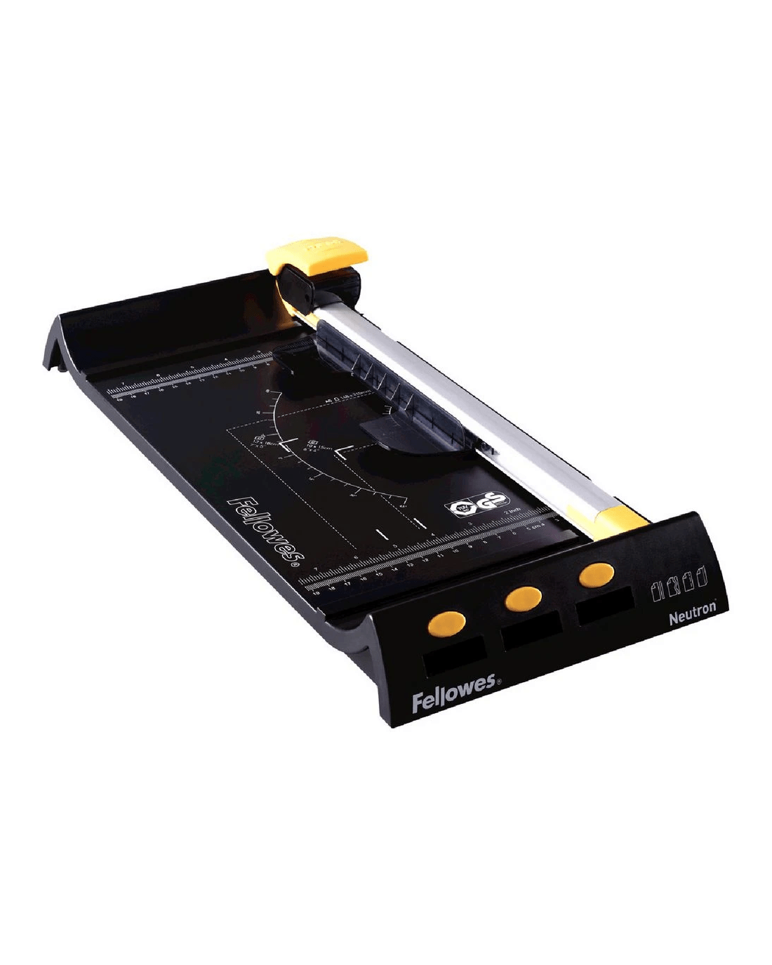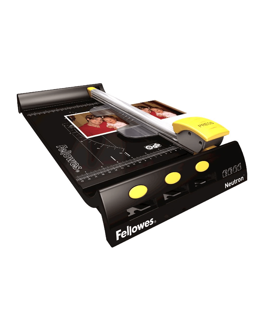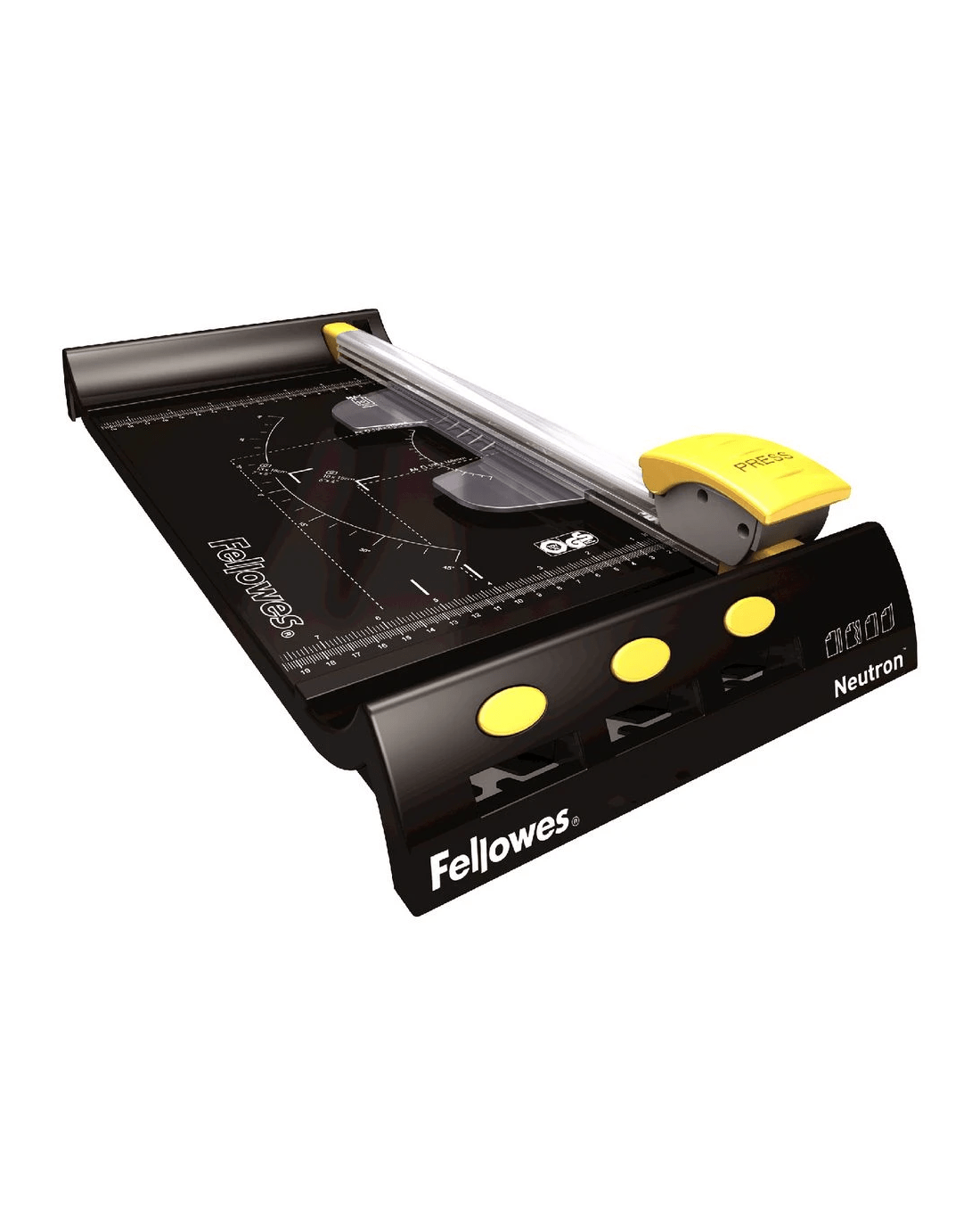 The Fellowes Neutron Paper Trimmer has a sharp, stainless steel blade so you can cut paper accurately. It comes in a handy A4 size and can cut up to 10 sheets (80gsm) at a time, making it ideal for use in the home office. Its unique SafeCut blade cartridges protect the stainless steel blade so it is only exposed when trimming, ensuring maximum safety and easy use.