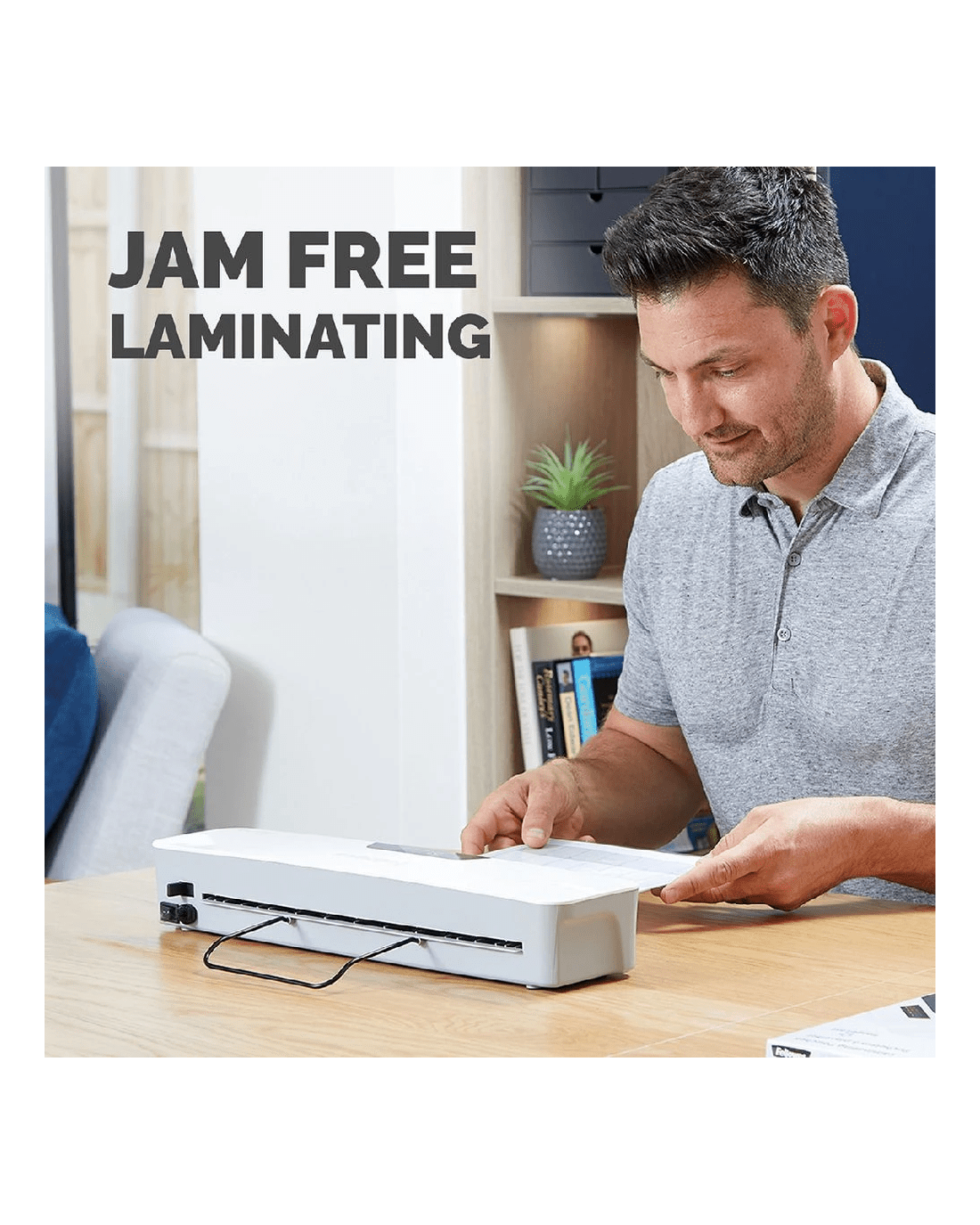 • This laminator is white and fits seamlessly into any space.