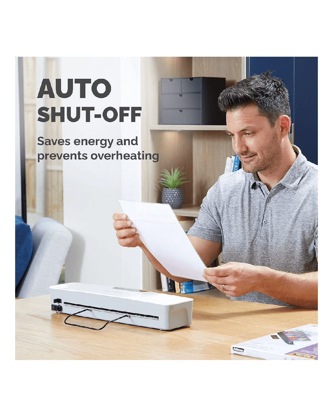 • Power save with this laminator's auto shutdown function within 30 minutes of inactivity.