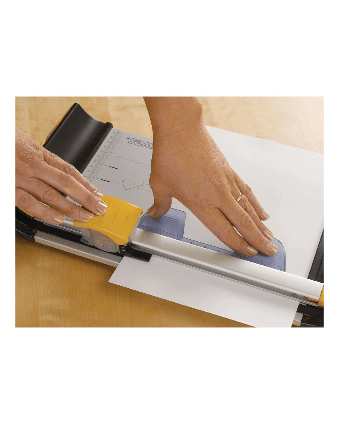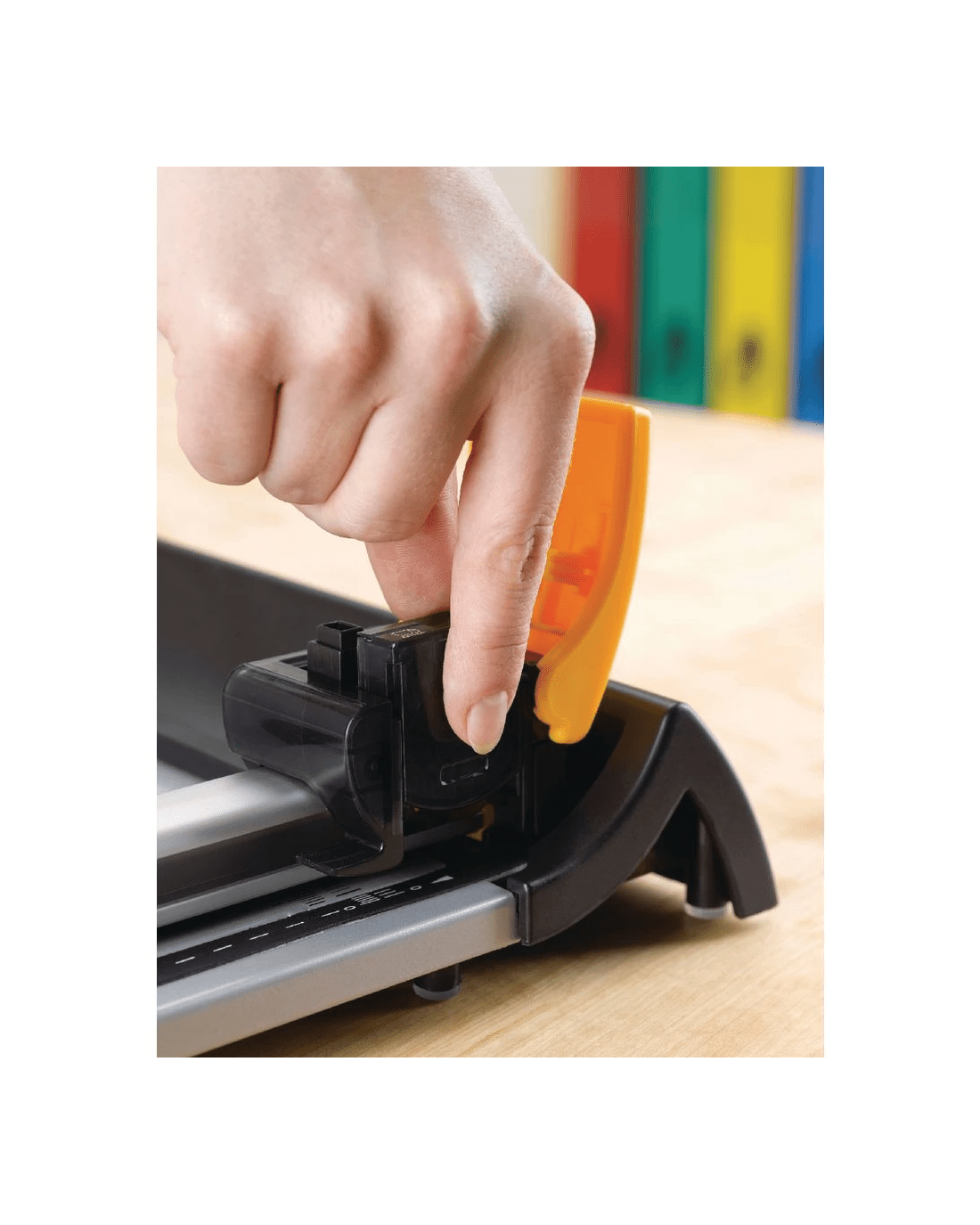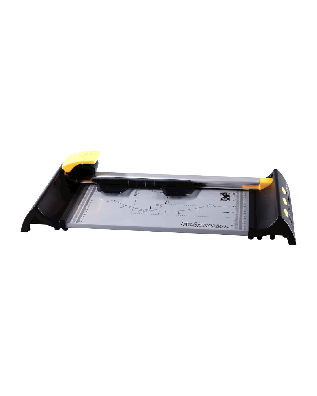 The Fellowes Proton Paper Trimmer has a sharp, stainless steel blade so you can cut paper accurately. It comes in a handy A4 size and can cut up to 10 sheets (80gsm) at a time, making it ideal for use in the home office. Its unique SafeCut blade cartridges protect the stainless steel blade so it is only exposed when trimming, ensuring maximum safety and easy use.