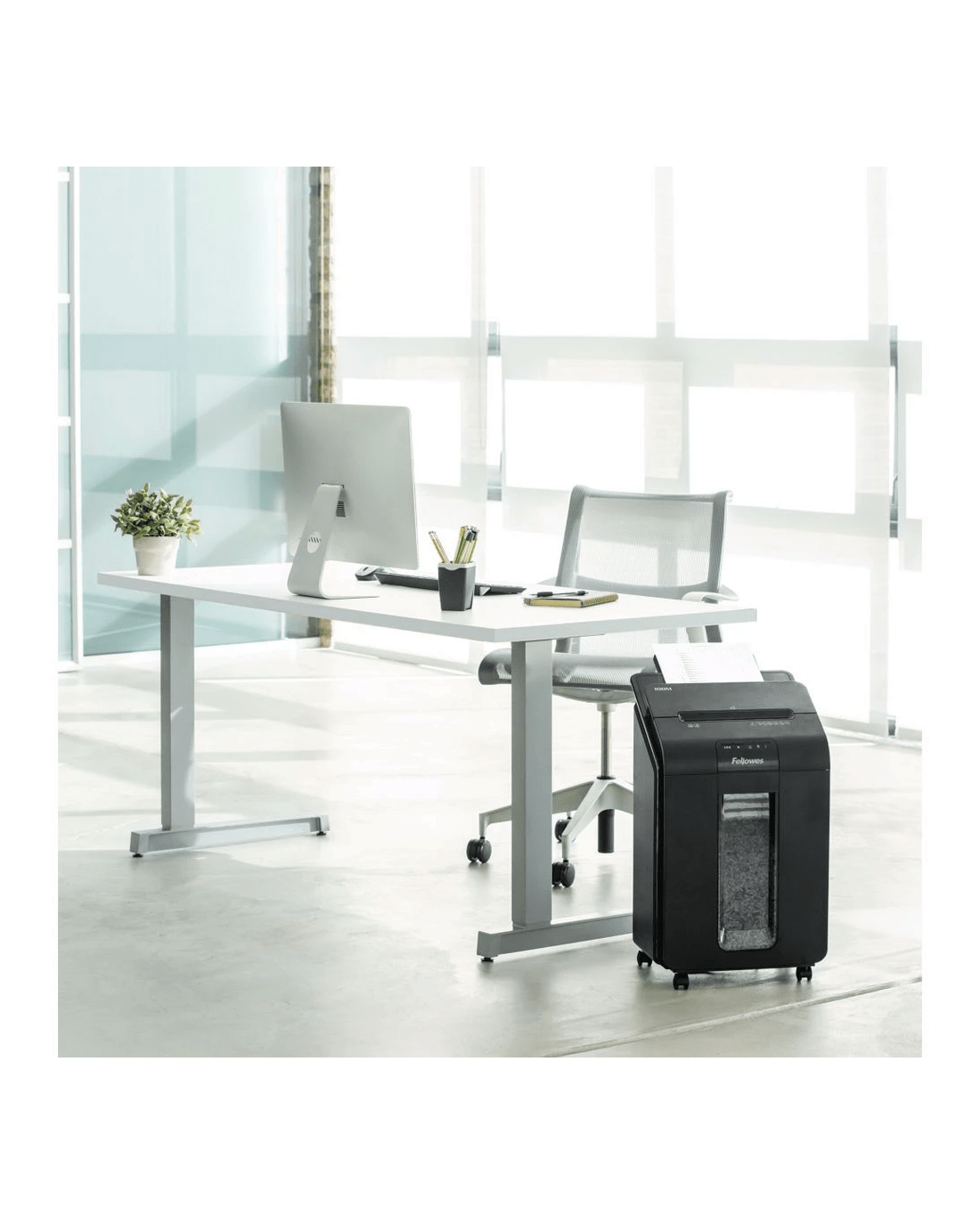 The Fellowes Auto Micro Cut Shredder can shred up to 100 sheets of paper at once using its automatic shredding function. With its 15 minute run time, you can dispose of a large volume of documents confidentially without waiting for the machine to cool down. It features a specialised SilentShred function that offers a quiet shredding experience, so you won't disturb others in the process of document destruction.