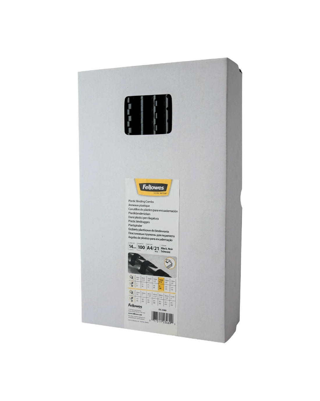 Sold by OfficeworksFellowes Binding Combs 21 Loop 14mm Black 100 Pack
