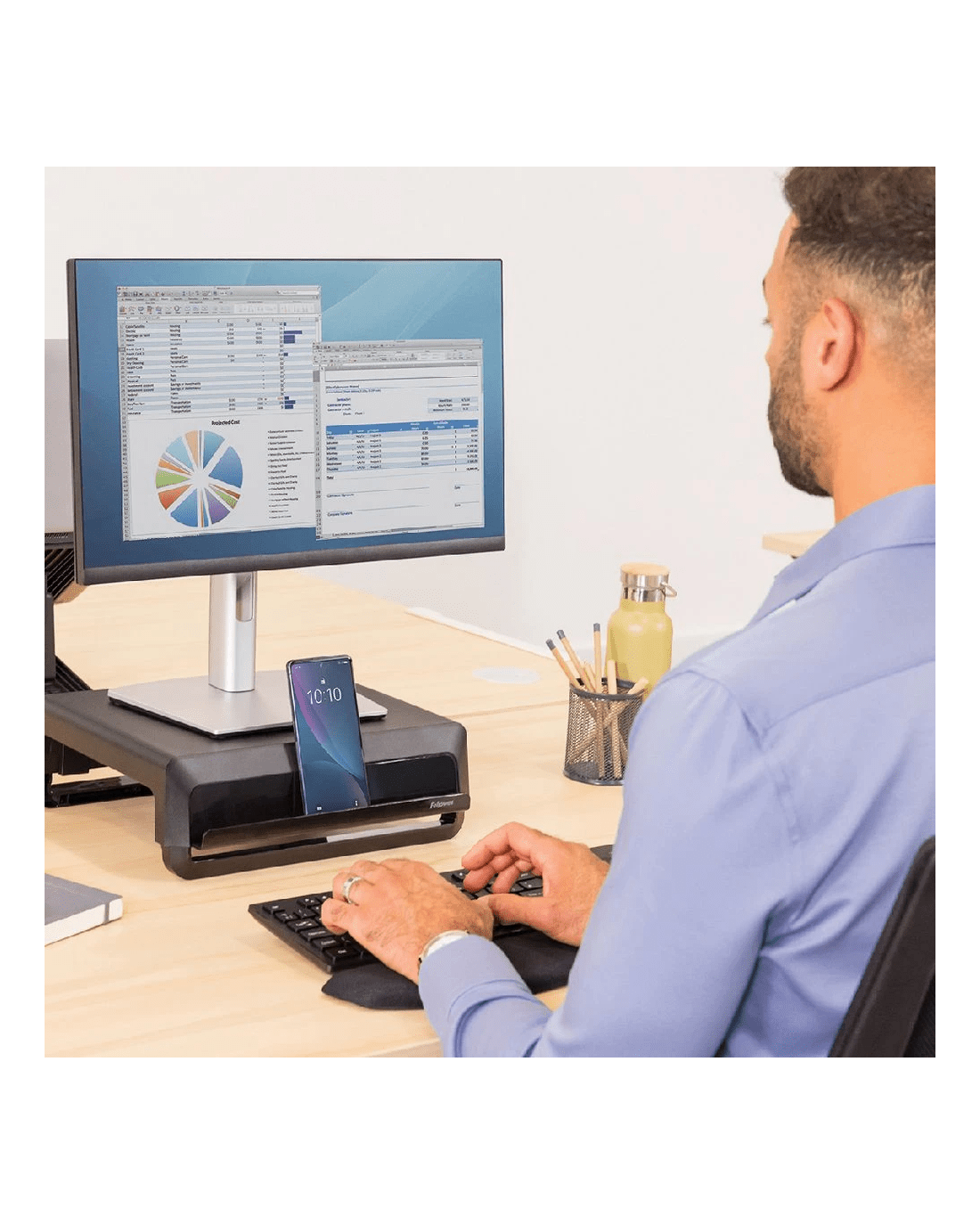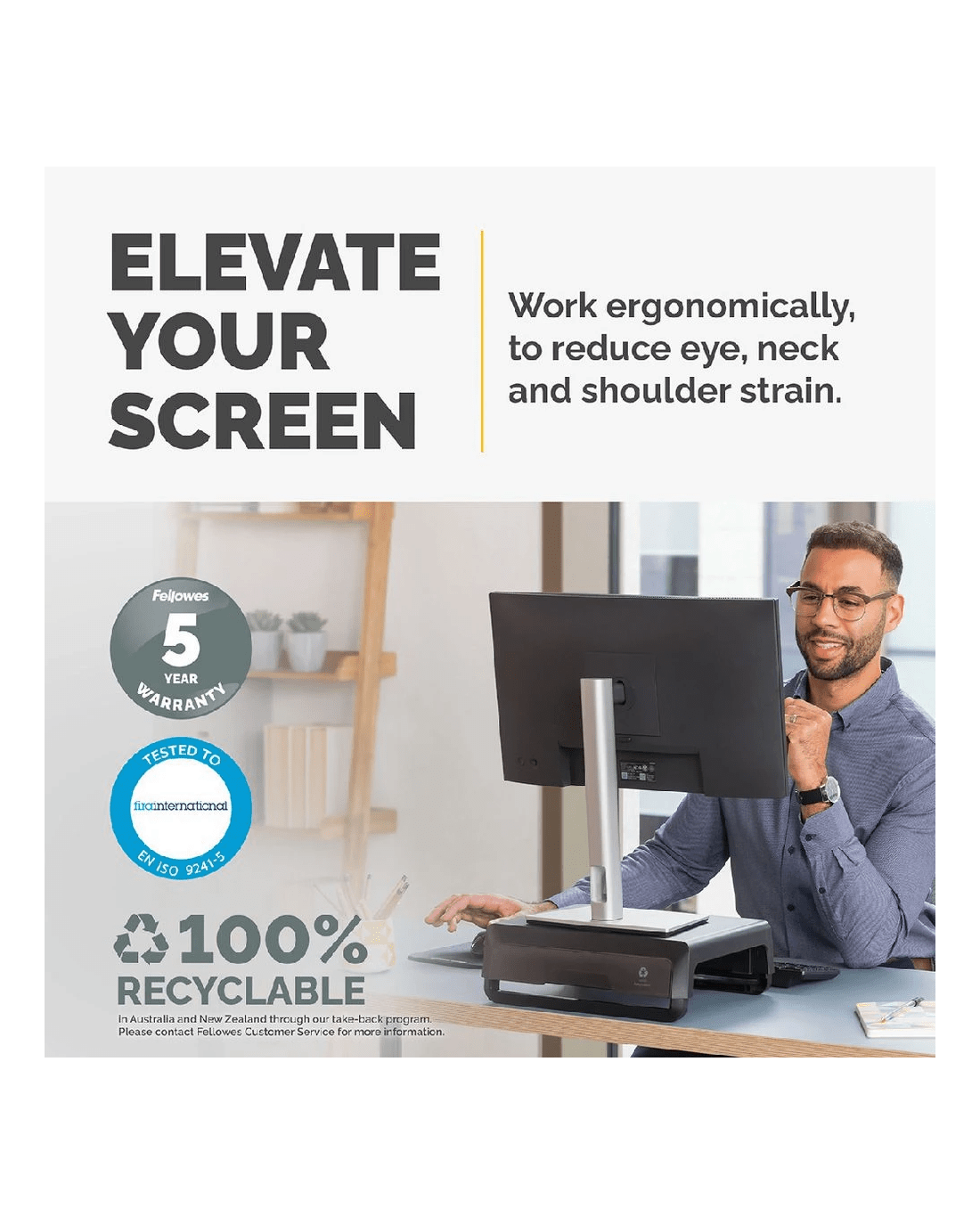 Complete your home workspace with Fellowes Breyta Monitor Stand. Featuring 3 height settings for ergonomic viewing comfort, it has a portable design that's easy to set up, adjust and store away, perfect for hybrid working. This product is built to last, with an extended 5-year warranty.