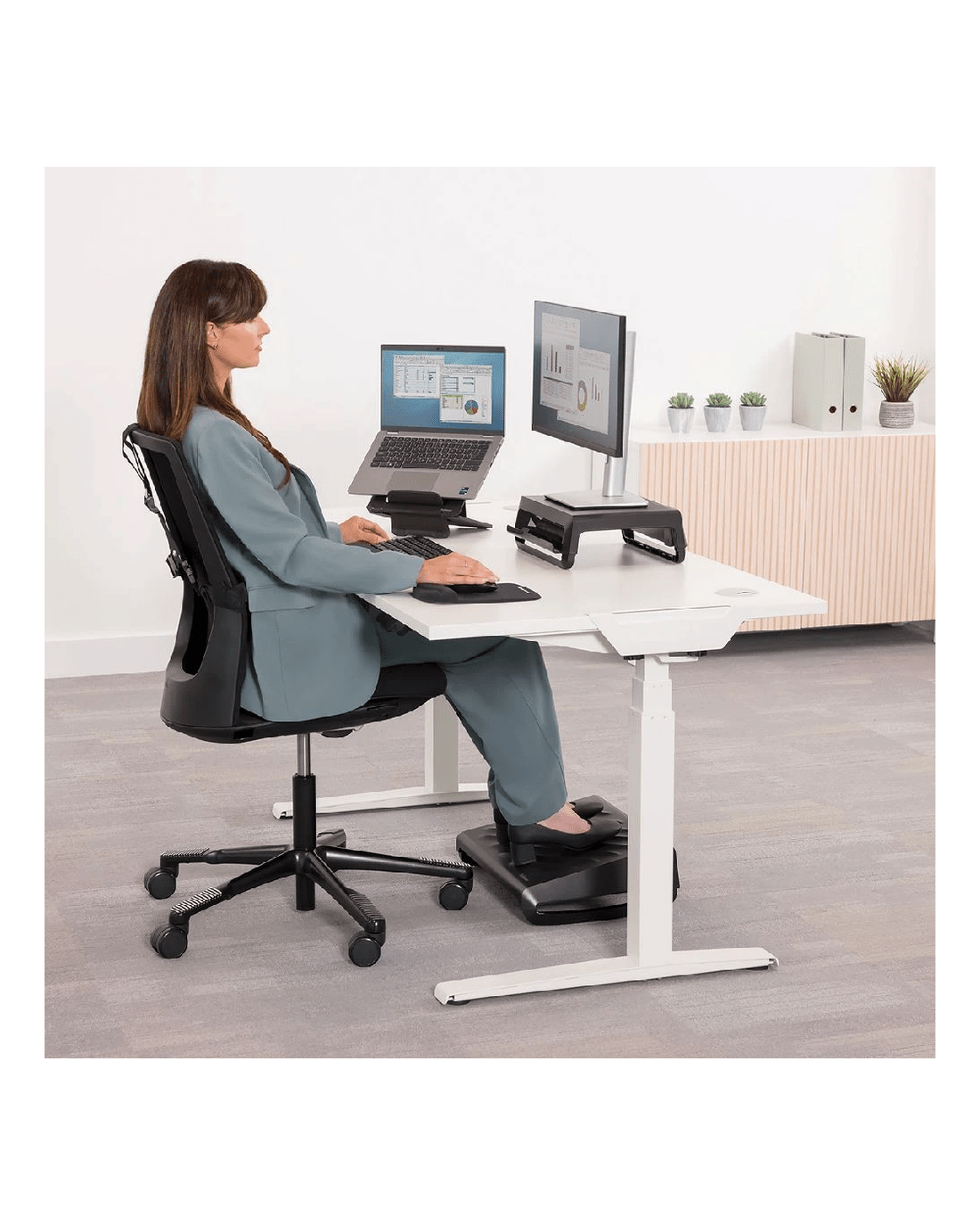 - Portable design that is easy to set up, adjust and store away – ideal for hybrid working.