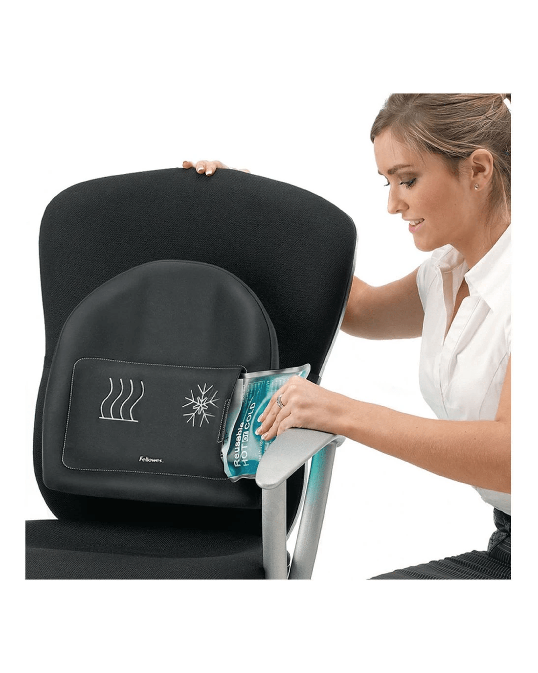 This Fellowes Heat and Soothe Back Support is a great addition to the chair in your workspace. It provides support to the natural curve of your lower back to help prevent slouching, plus it has both a heating and cooling gel pack which will help ease muscle aches and pains.