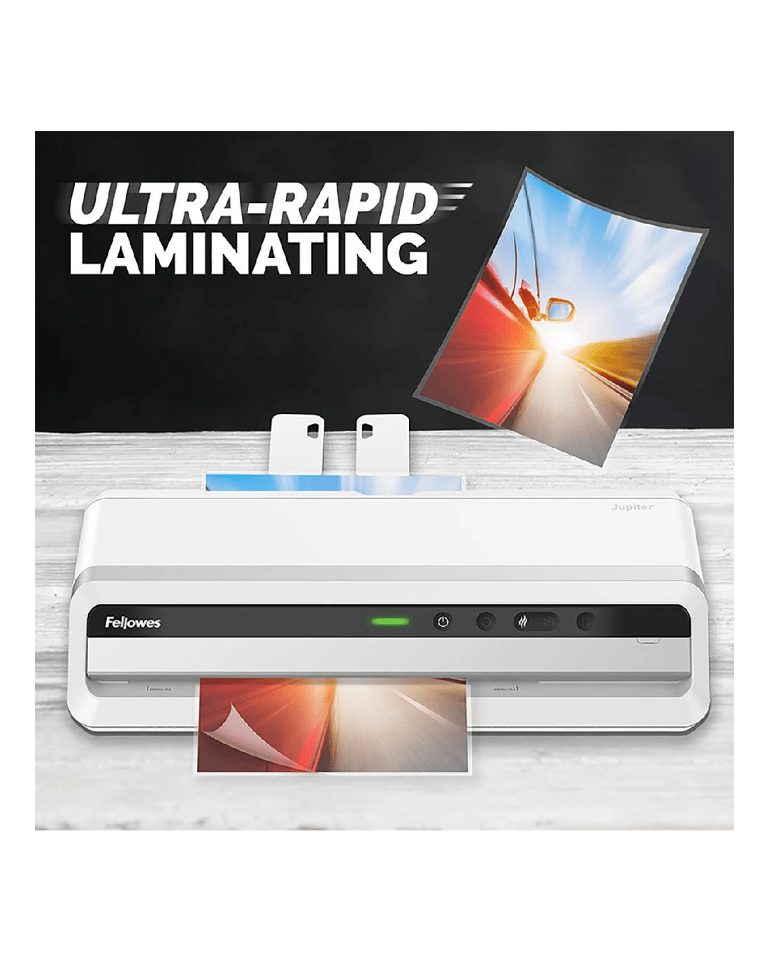 Add a protective layer to important documents, posters, certificates, and more with this Fellowes Jupiter 3 A3 Laminator. It has InstaHeat technology so it heats up in 30-60 seconds, and 6 rollers to ensure your lamination is done to a high quality. It accepts pouches up to A3 in size.
