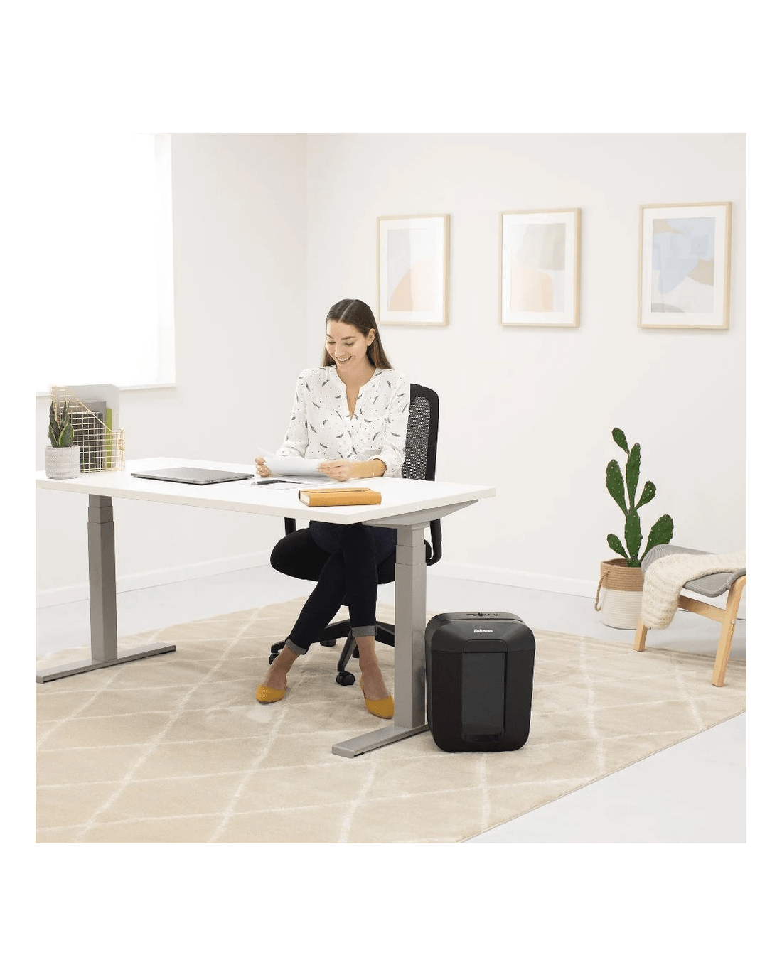 This Fellowes LX41 Micro-cut Shredder shreds papers into 4 x 12 mm micro-cut particles. In addition to paper, it can also shred staples, paper clips and credit cards. The patented safety lock disables the shredder for added safety protection.