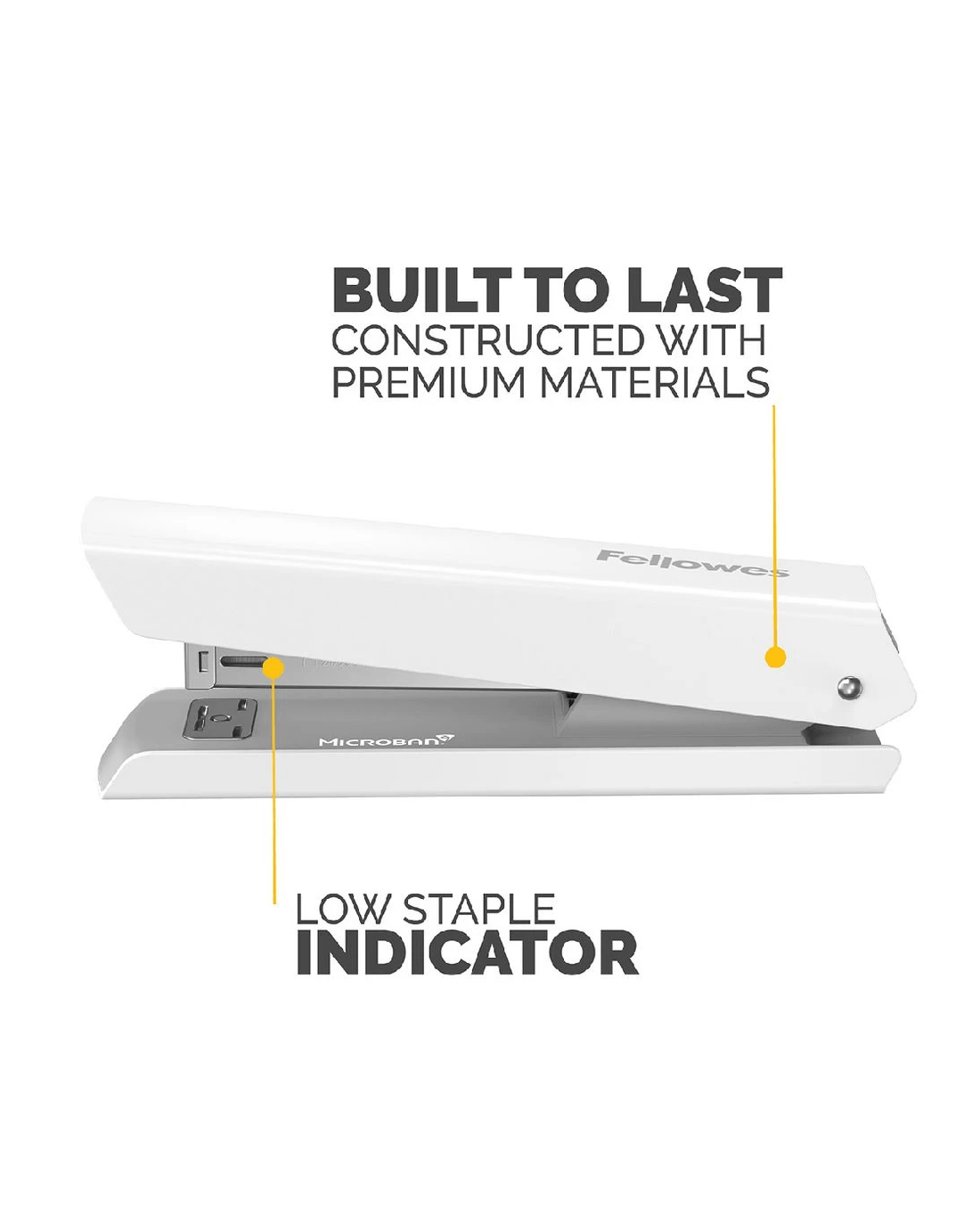 - Its smooth, jam-free performance ensures successful stapling every time.