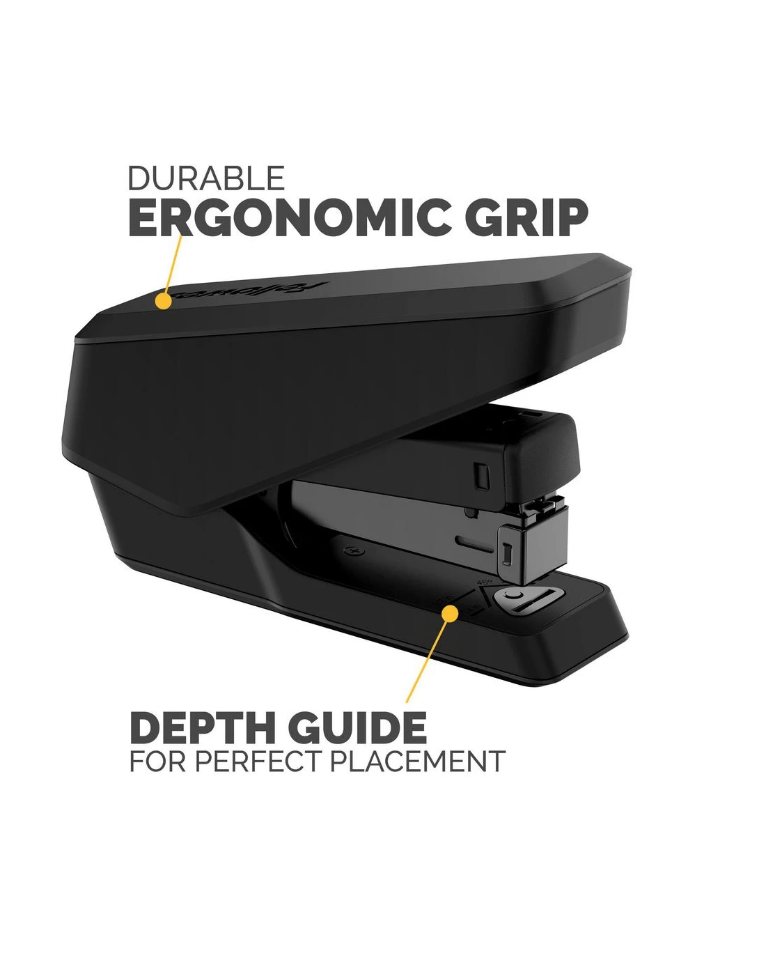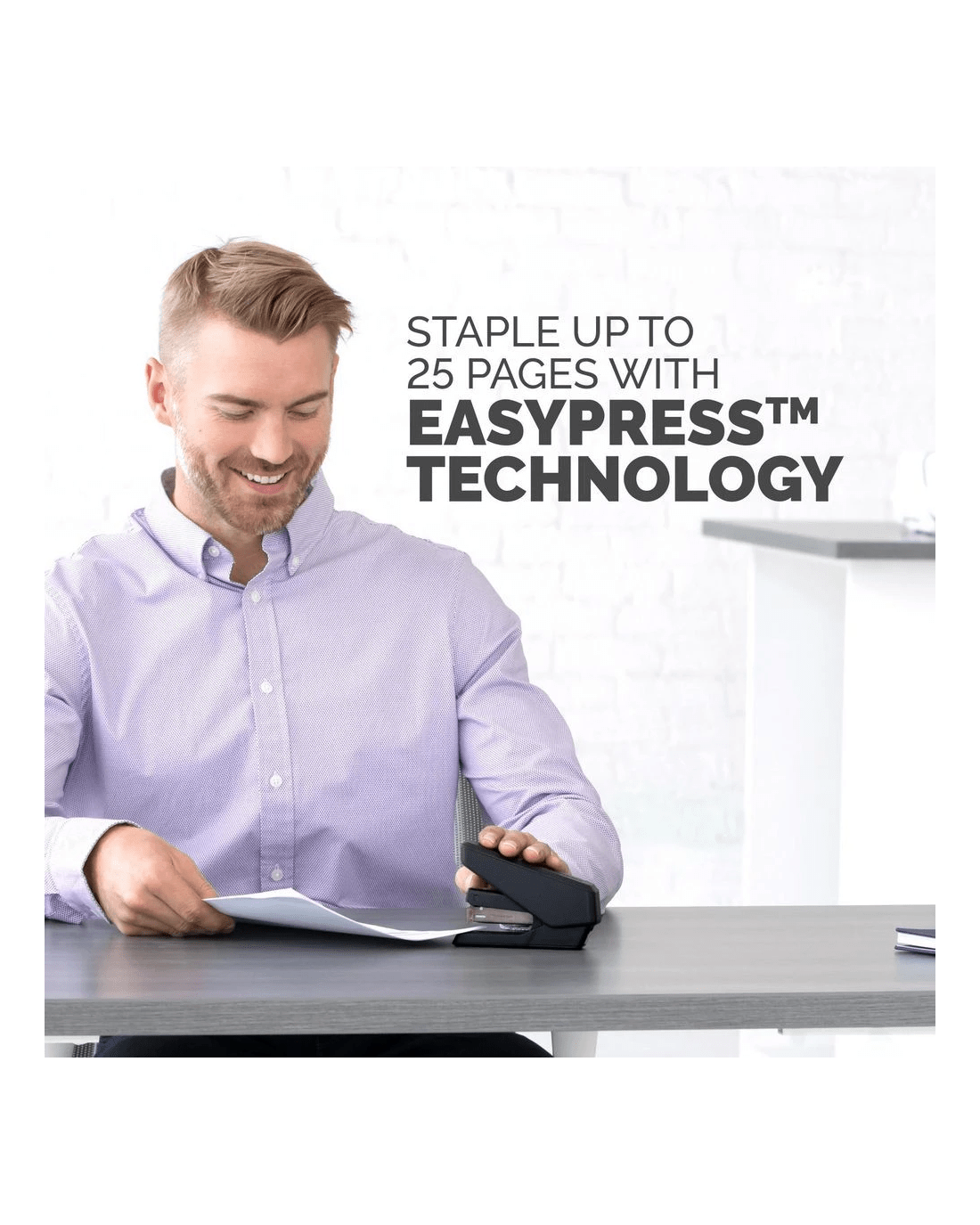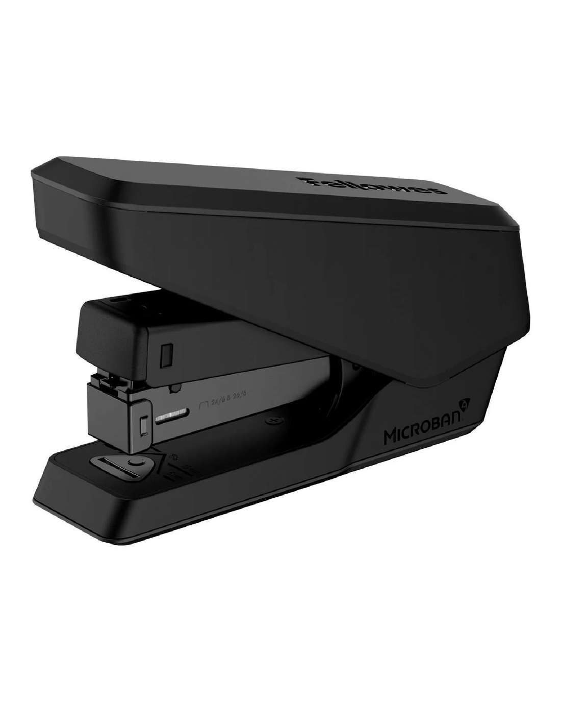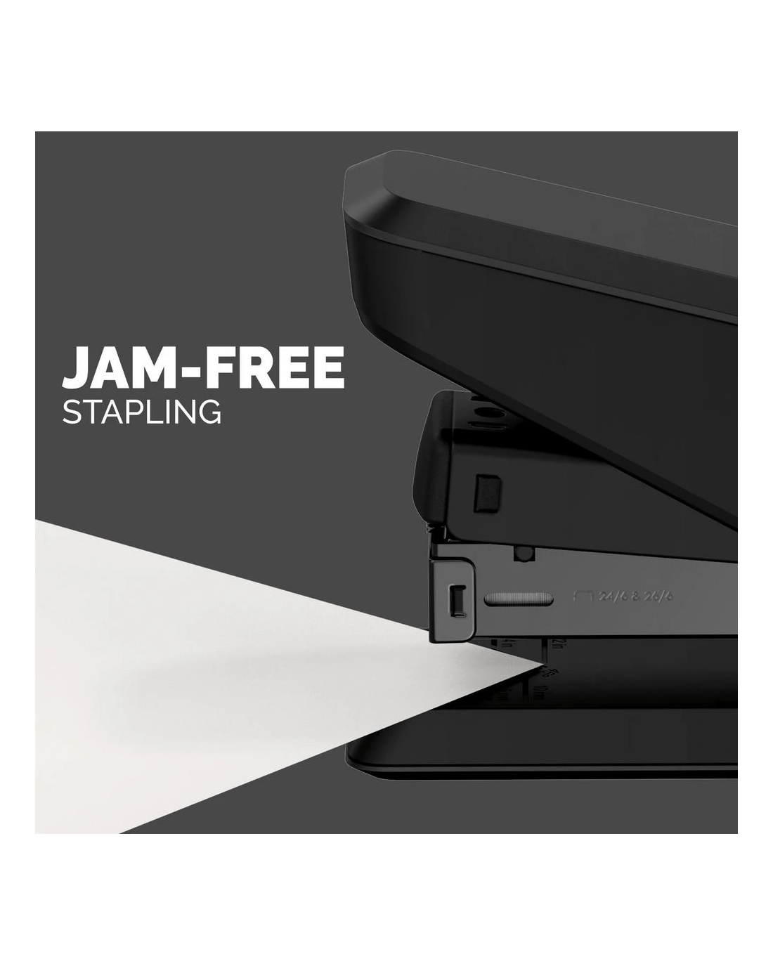 This Fellowes LX840 Easy Press Stapler allows you to effortlessly staple up to 25 sheets of paper at a time. Durable, ergonomic and fit with jam-resistant technology, you can use this stapler over and over again. This model can hold a half strip of size 24/6 and 26/6 staples.