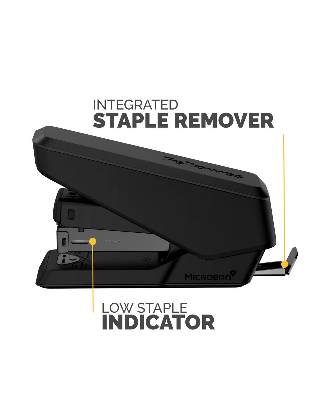 - It includes a built-in staple remover.