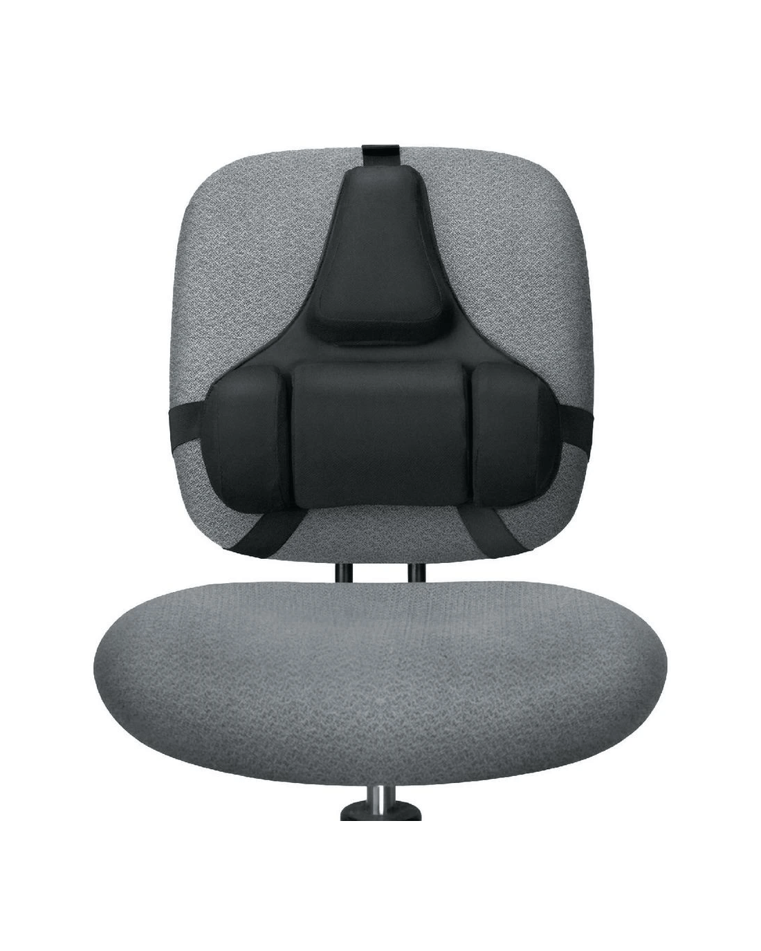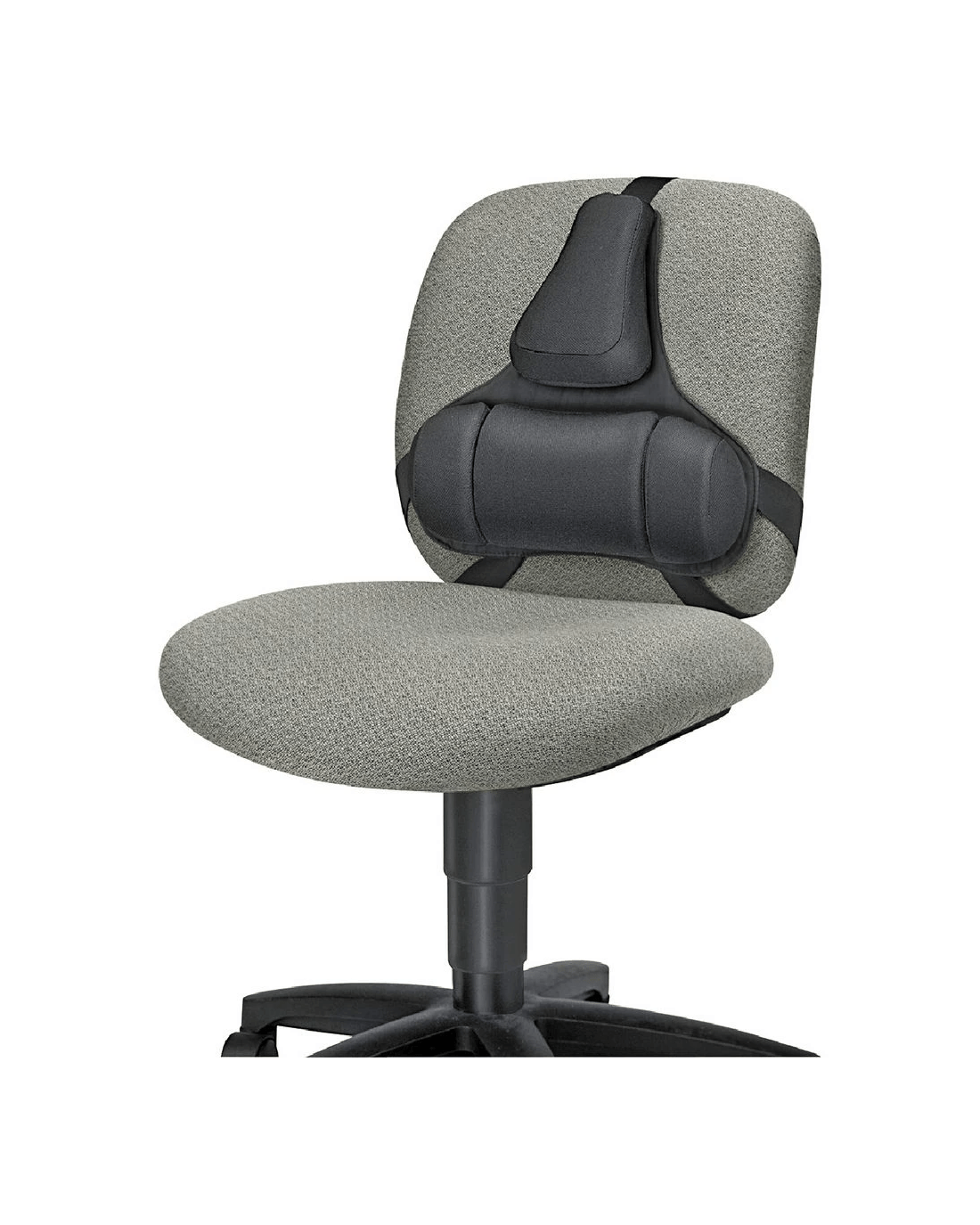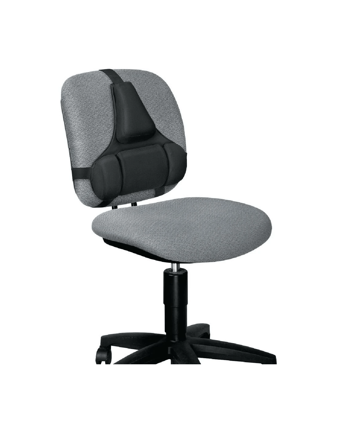 The Fellowes Professional Back Support has a low density foam construction so it will conform to your body's shape and contours. It consists of 3 sections for lumbar support and features an adjustable buckle to keep it from shifting while in use.
