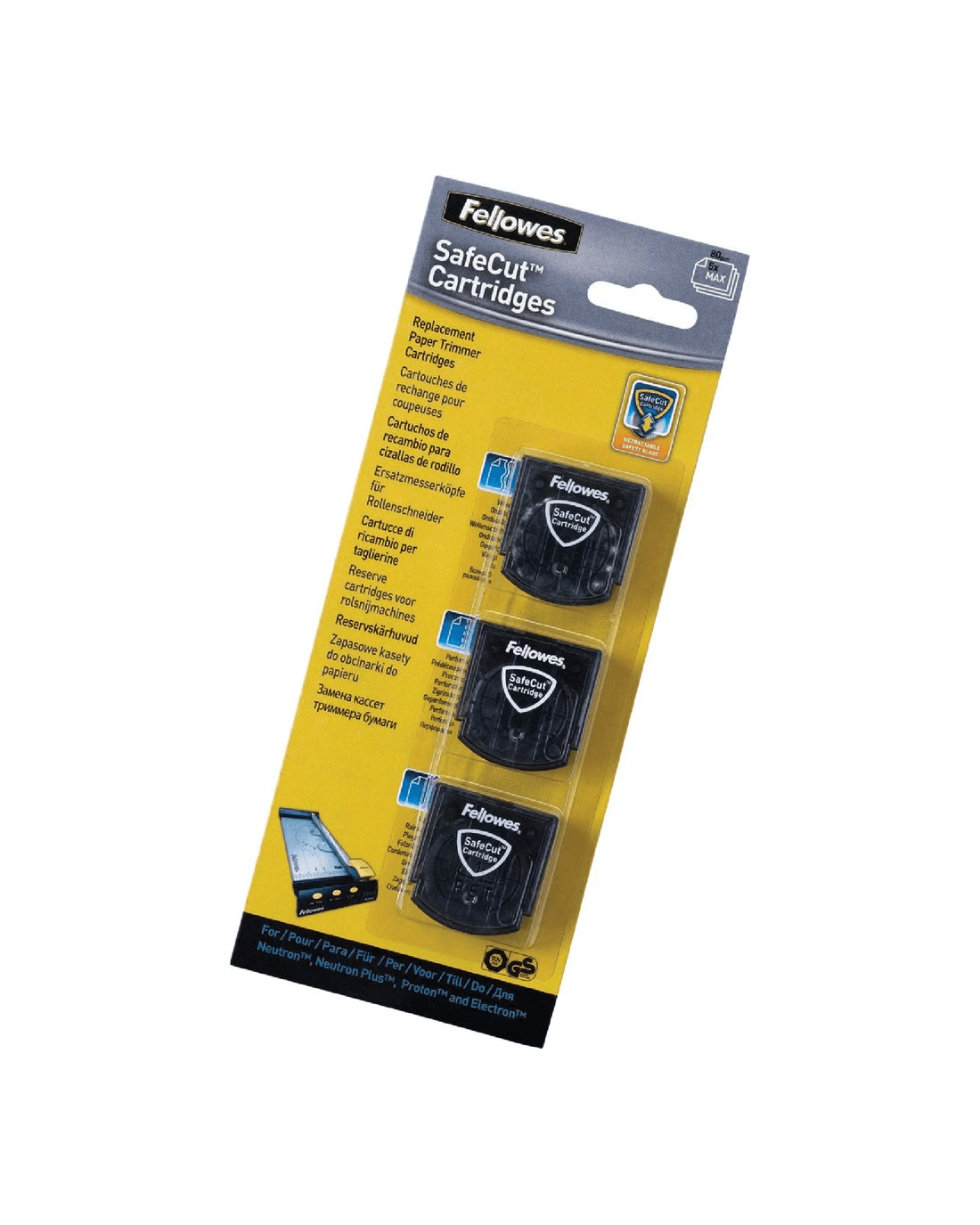 - Cartridges are designed for use with Fellowes Neutron, Neutron Plus, Proton, and Electron Trimmers.