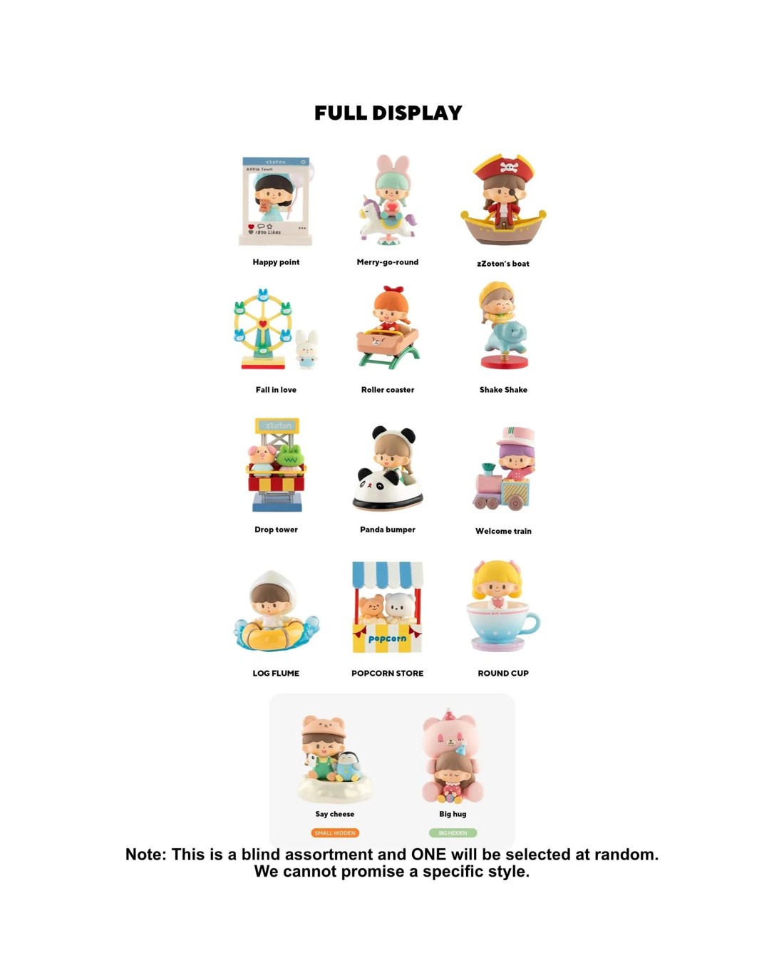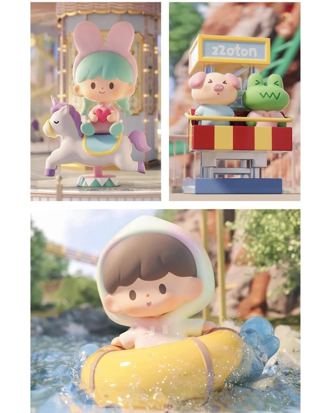 There is a 24-hour amusement park in the Apple Village. It is said that in the process of playing, you can harvest treasures. It is in this wonderful world that the story of zZoton's treasure hunt begins. Dive into a world of fun with the Treasure Land series! Each of these adorable 5-9cm figures evokes a sense of joy and wonder with the well-designed amusement park theming. There are 12 regular and 2 rare figures to find, who will you discover? Ages 15 +Contents