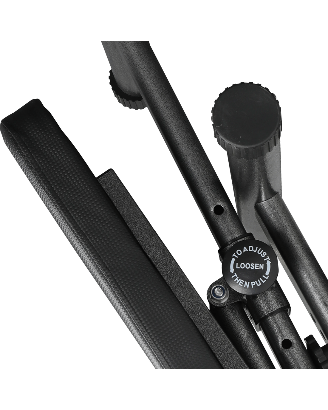 A simple yet effective weight bench that has all the right qualities for a satisfying workout at home. Or anywhere you desire. The Finex FID Sit-Up Bench is designed to let you train with minimum fuss. Rated up to 200kg in weight capacity, the FID bench is certainly no push over and can be adjusted for inclination to suit your requirements. The black powder-coated steel frame is built with a flawless finish that would make any home gym proud and impressive. Plus, the comfortable PU leather makes for easy cleaning and maintenance while the anti-slip capped feet ensure stability with rigorous use. Not least, the bench weight can be easily folded away for compact storage. Fitness never looked and feel so good with the Finex FID Sit-Up Bench. Fitness buffs, do try it at home.