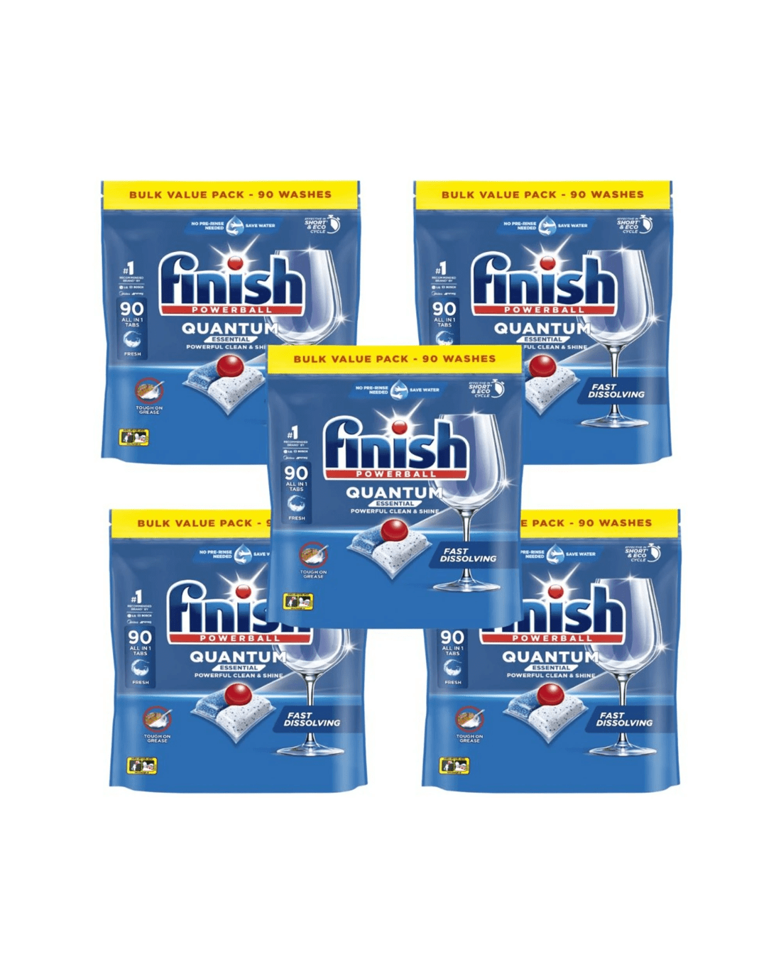 Package Content:5 x 90pk Finish Quantum Essential Dishwasher Tablets (450 Tablets)