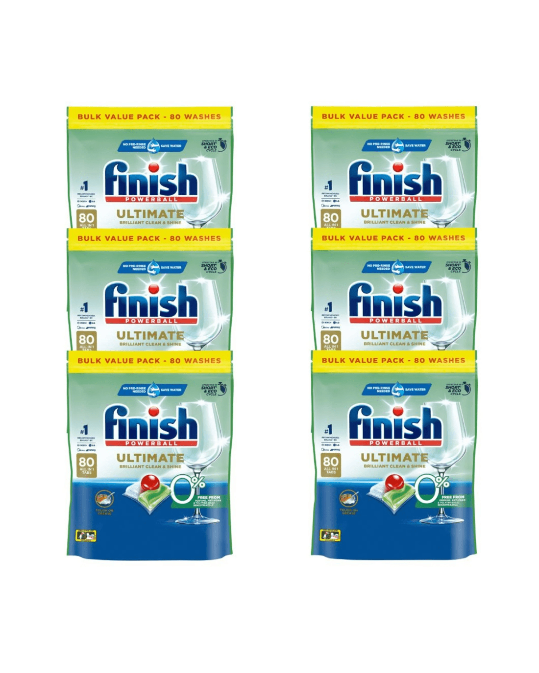 6 x 80pk Finish Powerball Ultimate 0% All In One Dishwasher Tablets (480 Tablets)