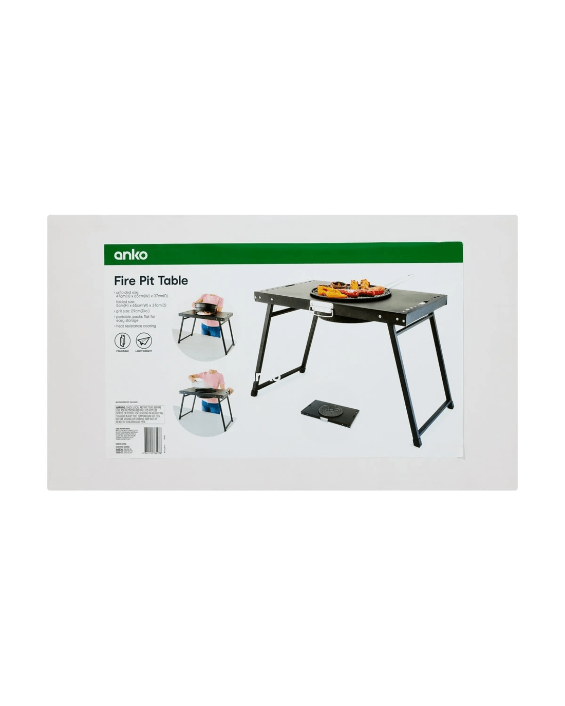 Warning: Check local restrictions before use. Do not use spirits or petrol for lighting or relighting. Follow usage instructions carefully.