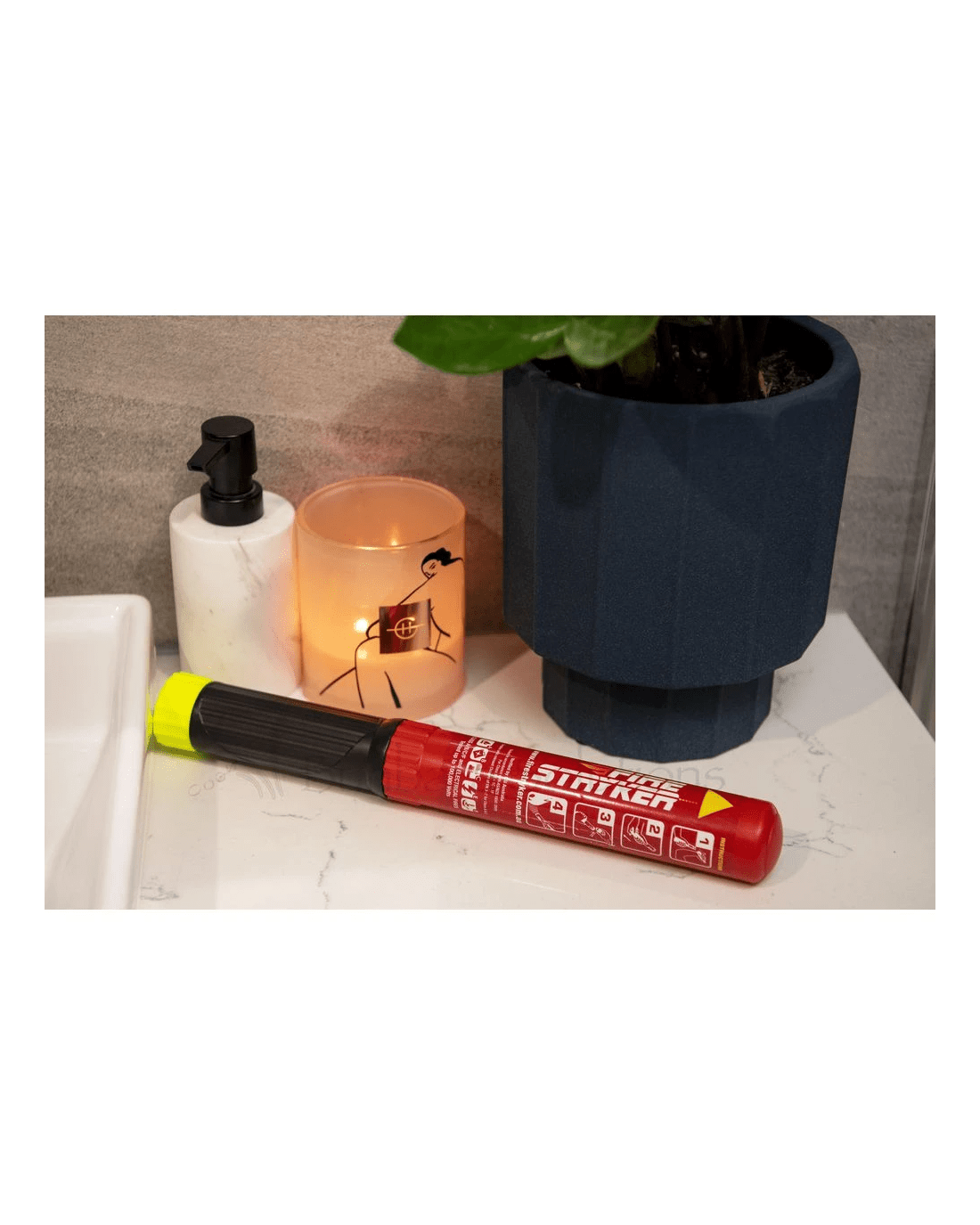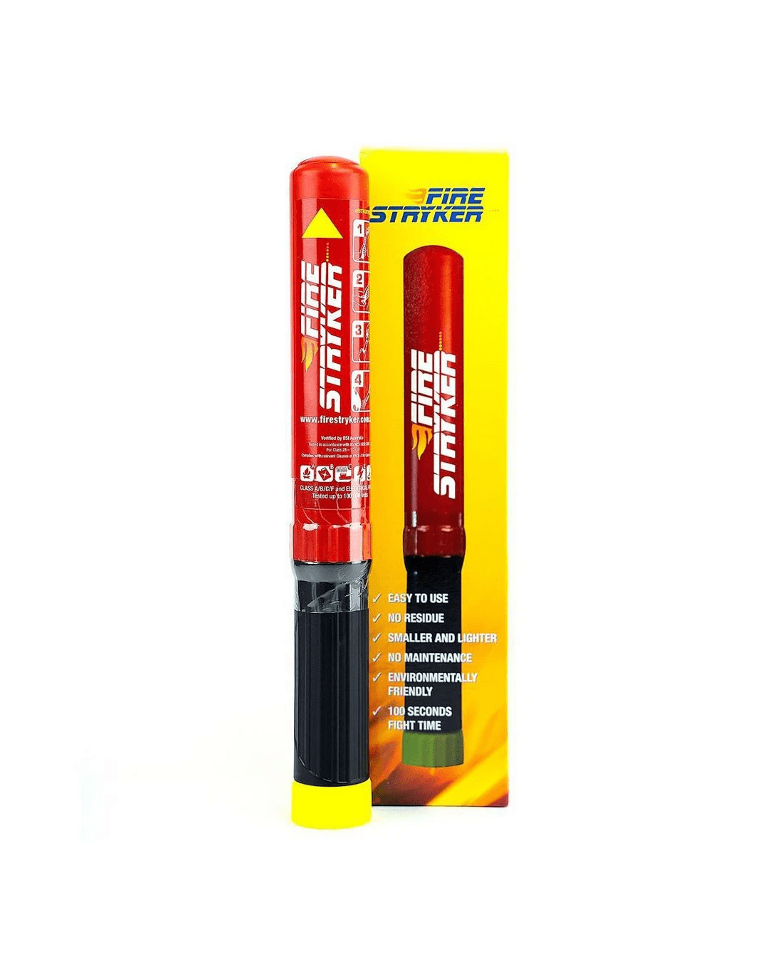 This Firestryker 100 Second Fire Suppression System is a small, lightweight cylinder that offers amazing extinguishing capabilities and capacity. Also known as the fire extinguisher stick, this system is suitable for vehicles, trucks, household, office, BBQ applications and more. The innovative design doesn't leave behind the residue of a regualr extinguisher and produces a potassium aerosol jet that blasts for approximately 100 seconds; simply point the nozzle towards the base of the flame to smother the fire at its core.