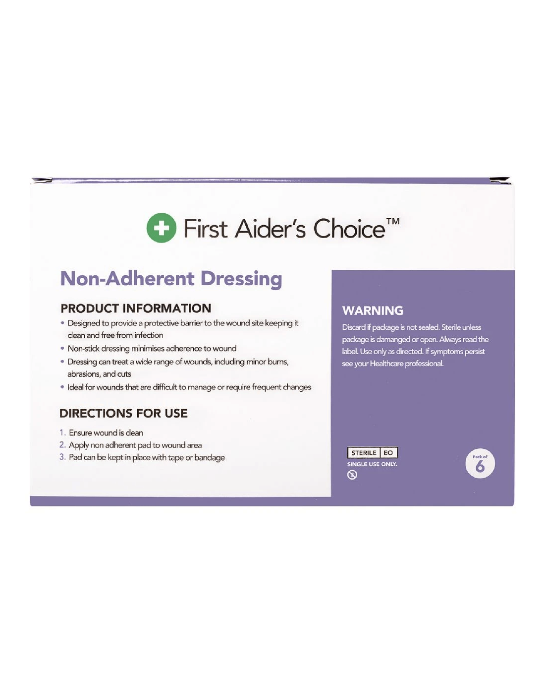 This pack of 6 Non-Adherent Dressings are ideal for wounds that are difficult to manage or require frequent changes. The sterile wound pad is recommended for treating injuries like cuts, wounds, bleeding and minor burns. Plus, the non-stick design minimises unwanted adherence to the wound.