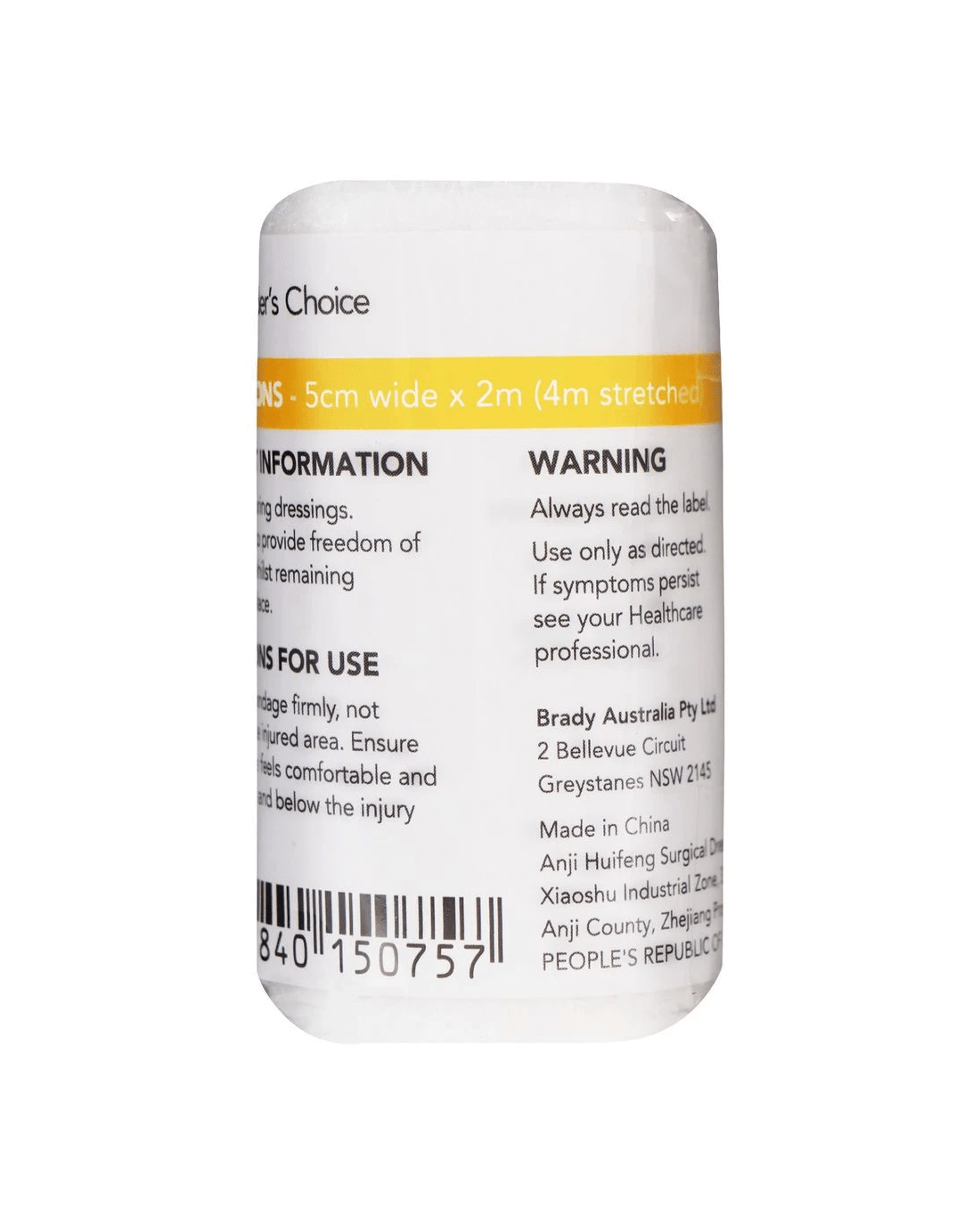 This First Aiders Choice Bandage is perfect for keeping in your first aid kit at home, in the car or in your workplace. It's designed to conform to your limb and retain wound dressings applied to high body movement areas.