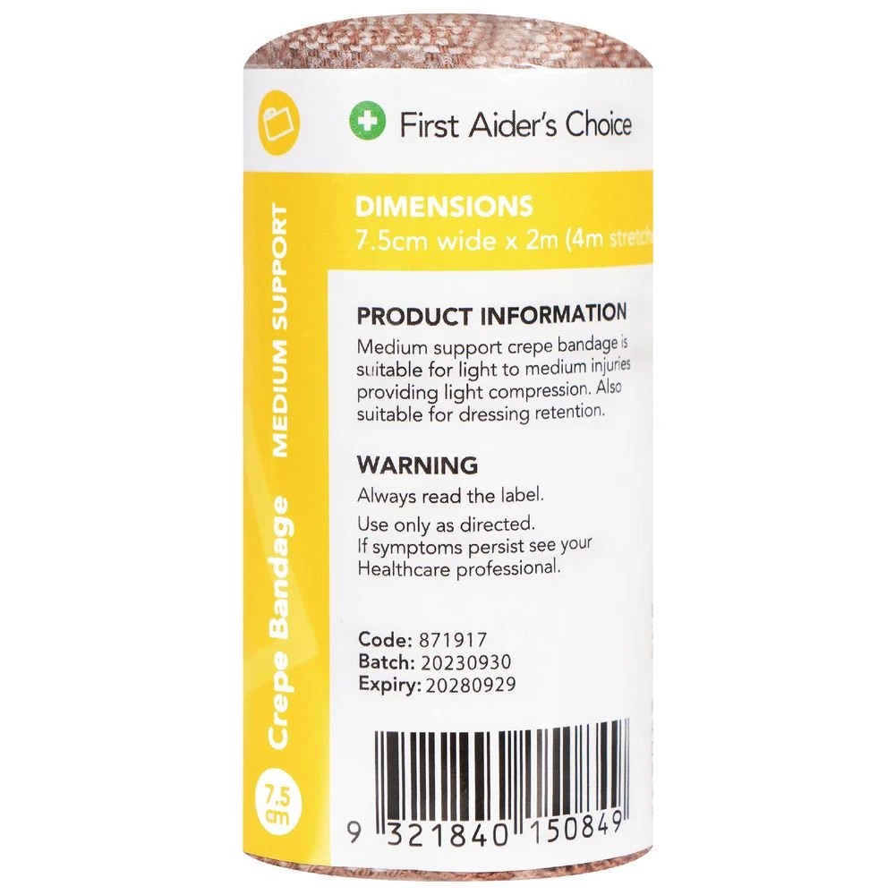 First Aiders Choice Medium Support Crepe Bandage 7.5cm