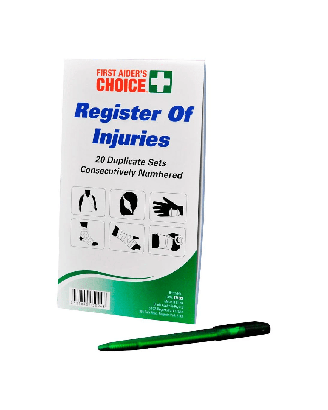 - The First Aiders Choice Register of Injuries comes with 20 duplicate sets so you can note down injuries and keep a record.