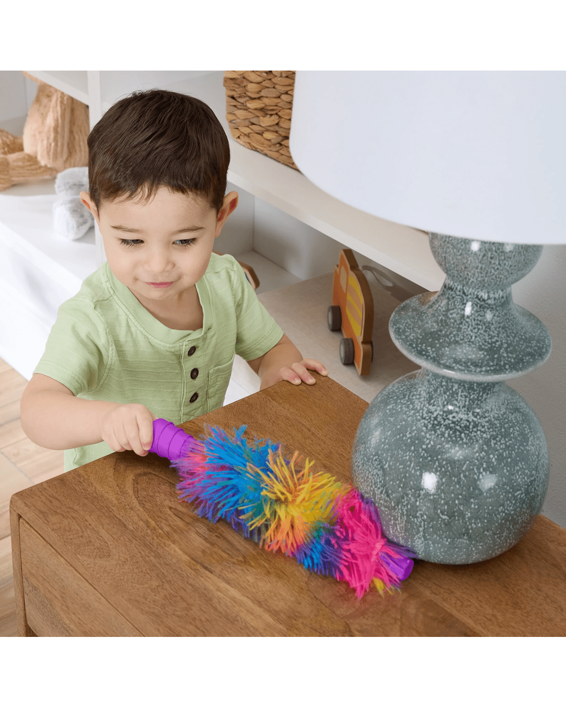 - Electronic toy vacuum for toddlers with a removable soft duster, lights and 2 play modes for learning and pretend play