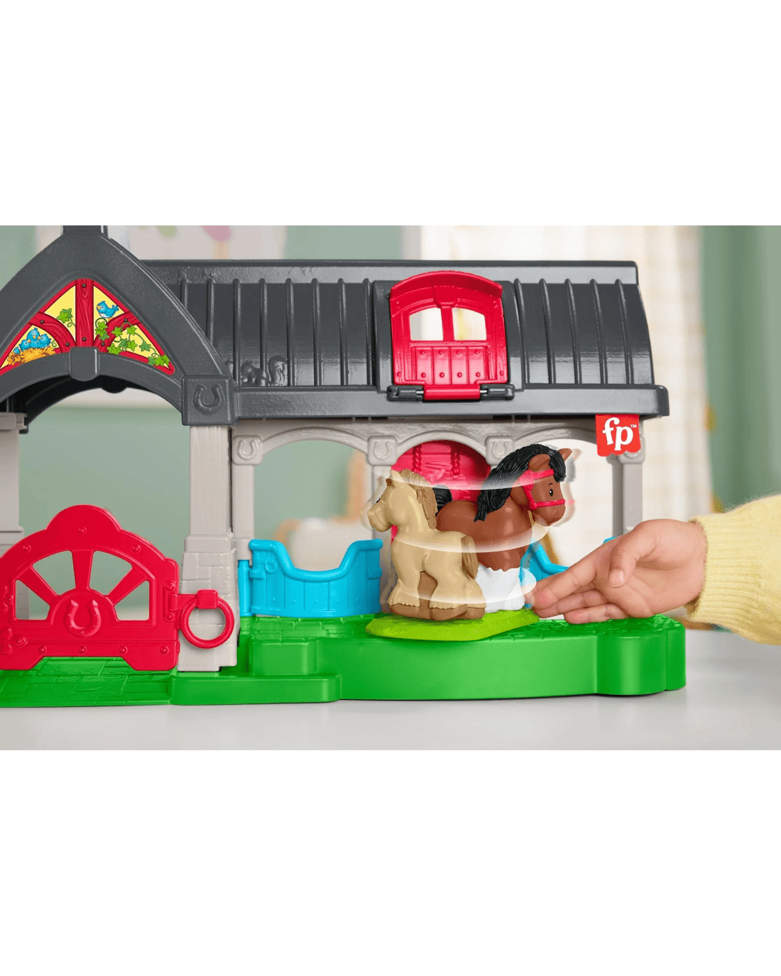 • Fun storytelling play: Drop the food pieces through the chute to feed the horses, open & close the stall doors, and corral the horses into their stalls to rest
