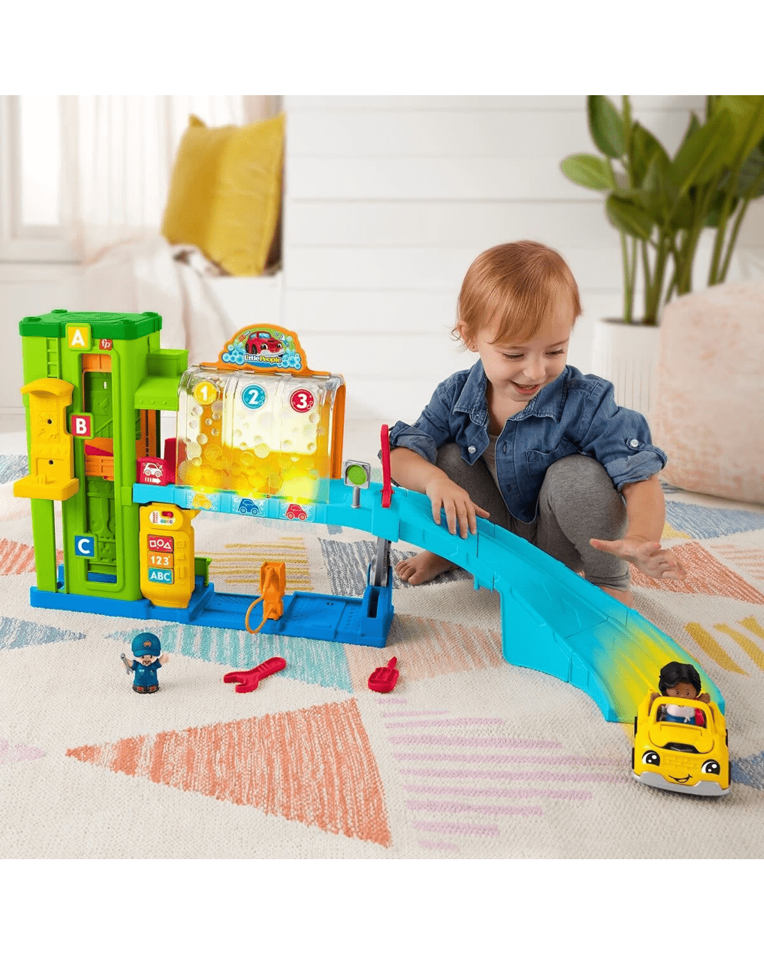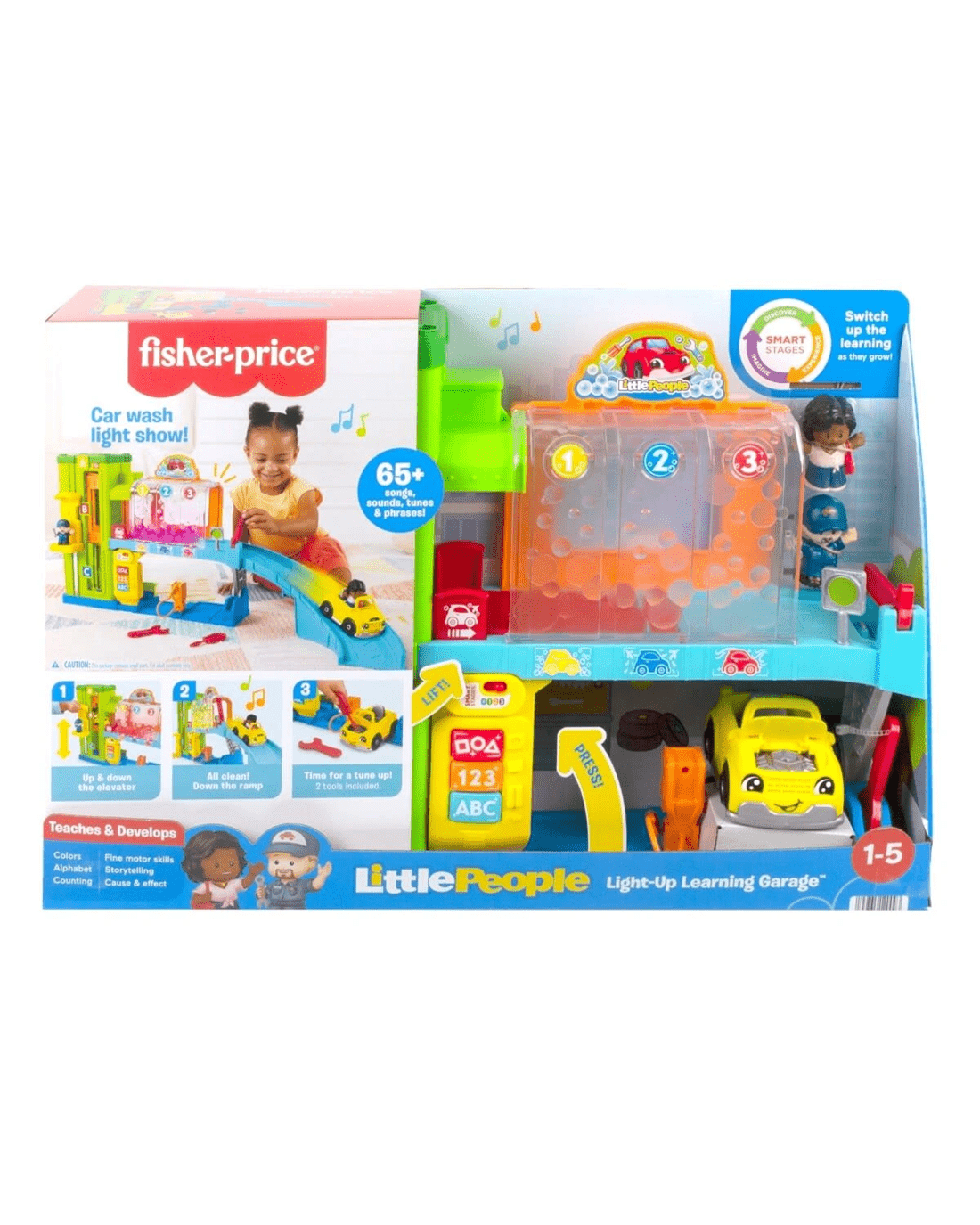 At the Fisher-Price Little People Light-Up Learning Garage playset, toddlers can 'fill' up, tune up and 'wash' their car before racing along to the next adventure! This interactive car garage playset features multi-colour lights and three Smart Stages learning levels of songs, sounds and phrases to enhance your child's pretend play. Kids can act out fun stories with two character figures, two mechanic's tool play pieces and a push-along toy car with a hood they can open and close.