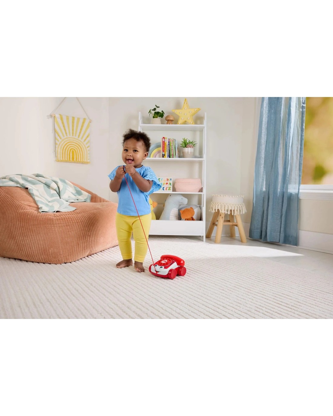 The classic Fisher-Price Chatter Telephone pull-along activity toy gets a fresh look in honour of Mattel's 80th anniversary! Styled in Mattel's iconic red colouring, this pretend rotary telephone has all the features you remember, including a spinning dial, realistic ringing sounds, and eyes that move up and down as kids pull the toy along. This friendly toy phone encourages early pretend play while helping to strengthen gross motor skills as kids walk (and chat) here, there, and everywhere! Colours and decorations may vary. Ages 1 +