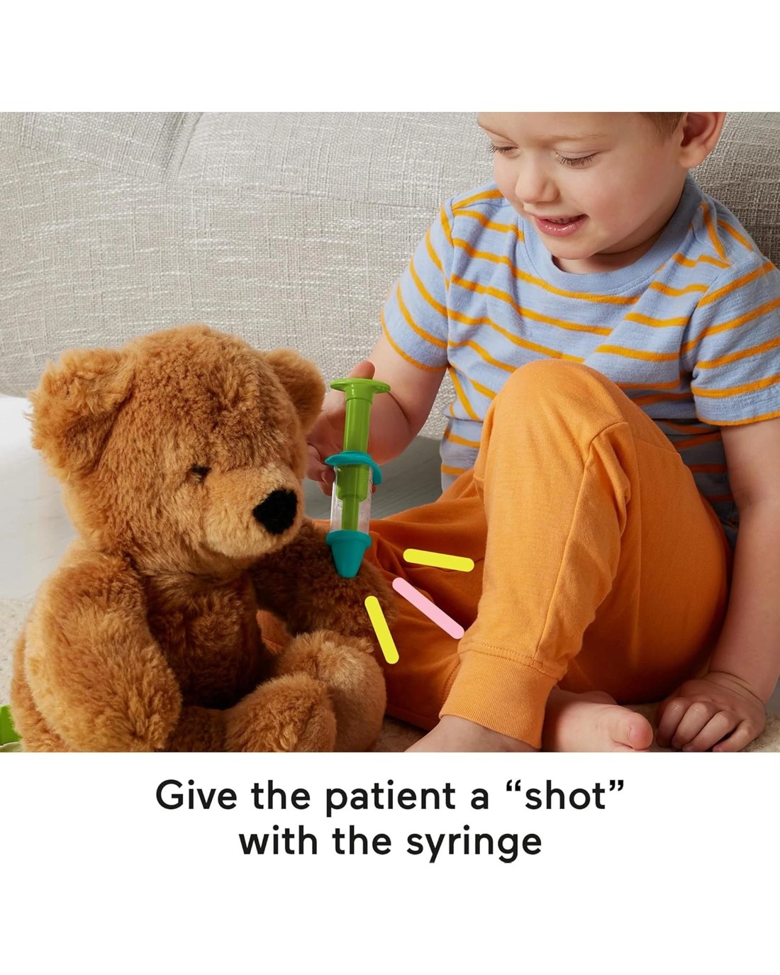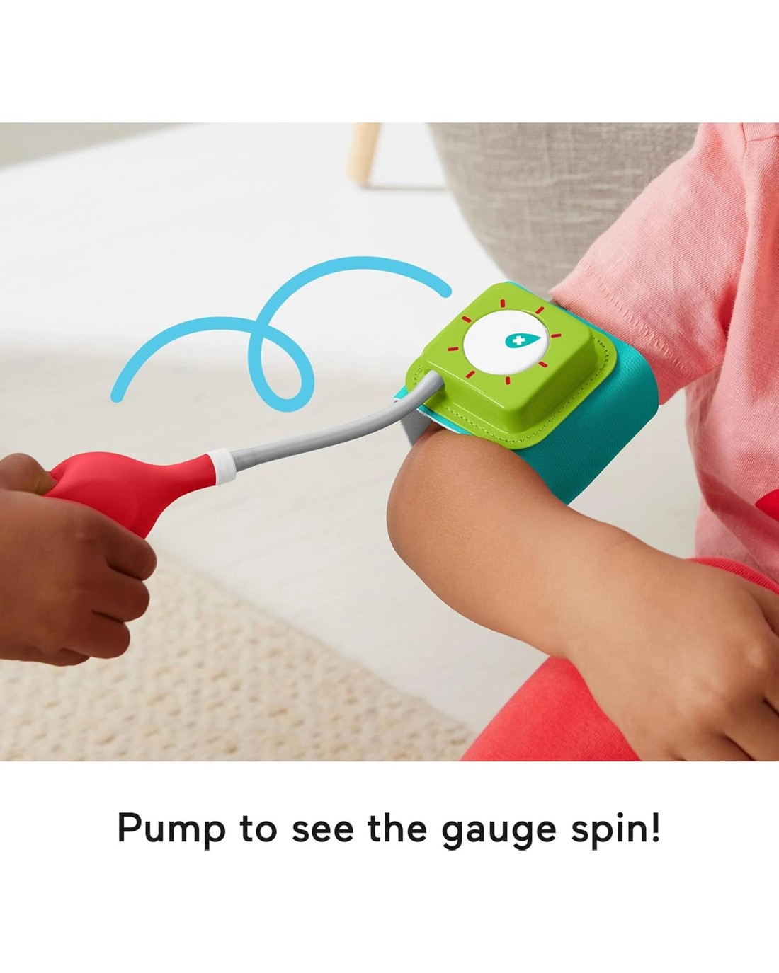 Press button on thermometer to go from “sick” to “well”Pump the blood pressure cuff to see the gauge spinAll play pieces store inside the bag, so making “house calls” is a breezeContents